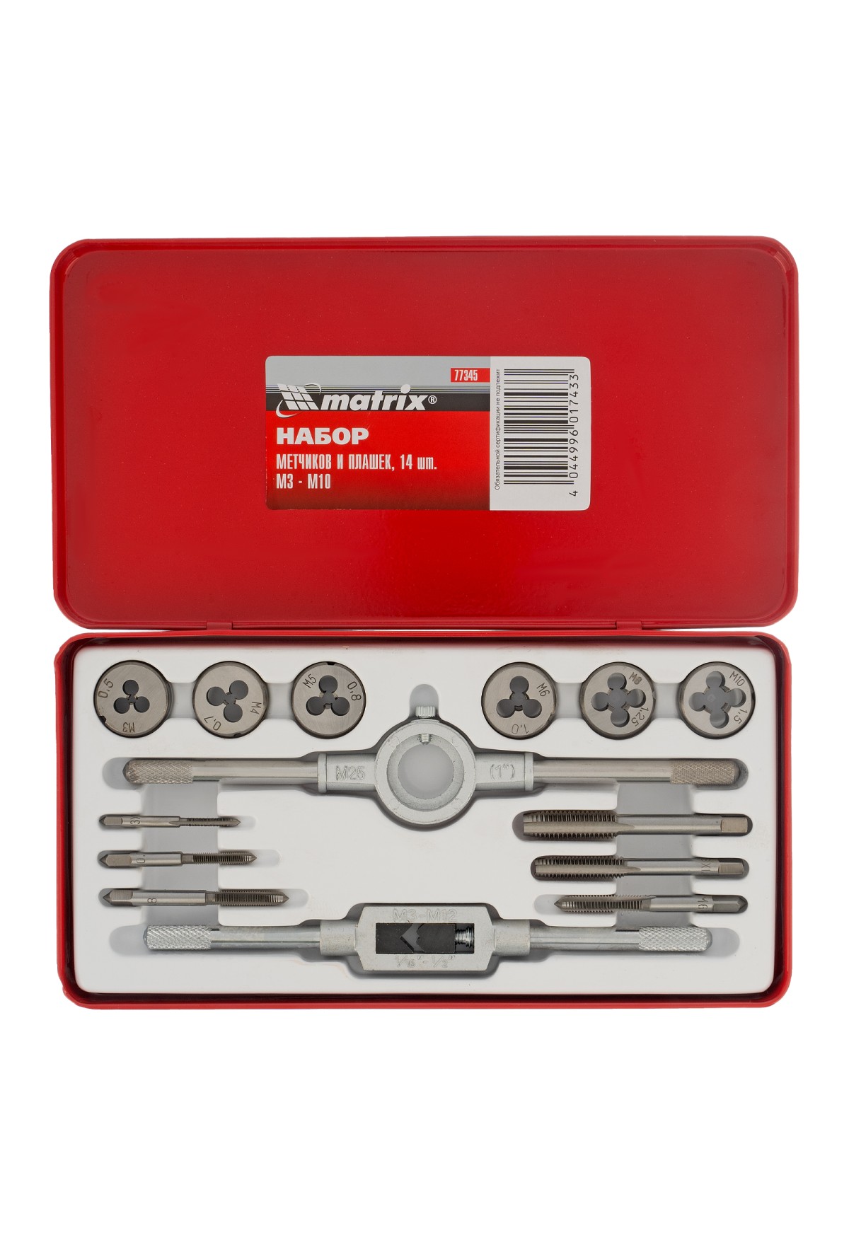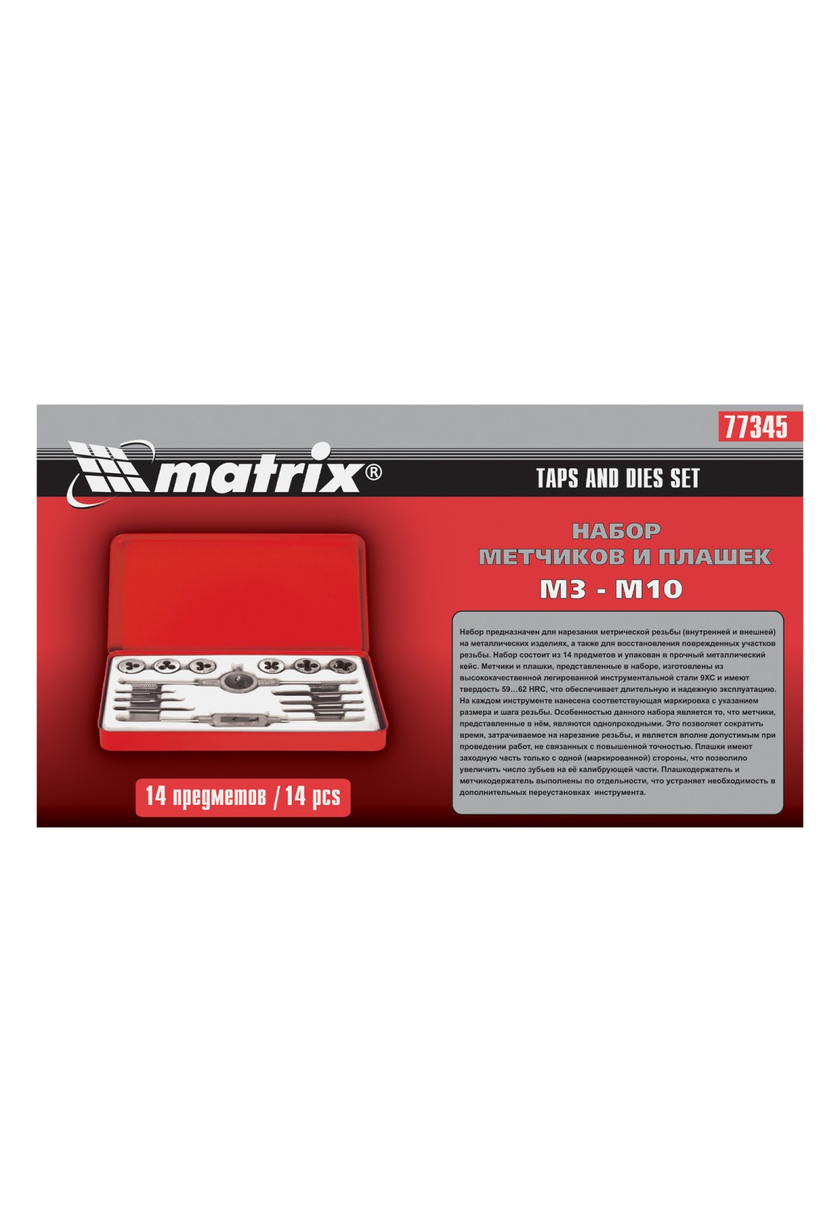 | Комплектация | Набор метчиков и плашек М3-М10 - 14 шт |