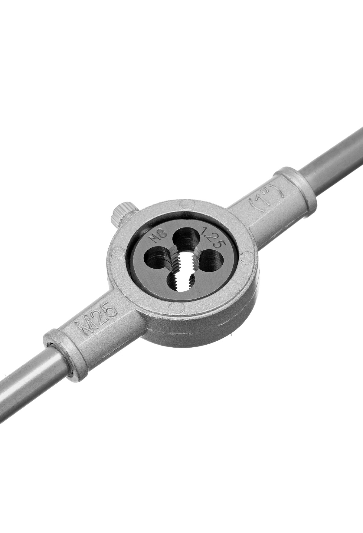 - Комфортная и эффективная работа — плашку удерживают в держателе боковые винты, метчик крепко фиксируется в воротке посредством регулируемого винтового механизма.