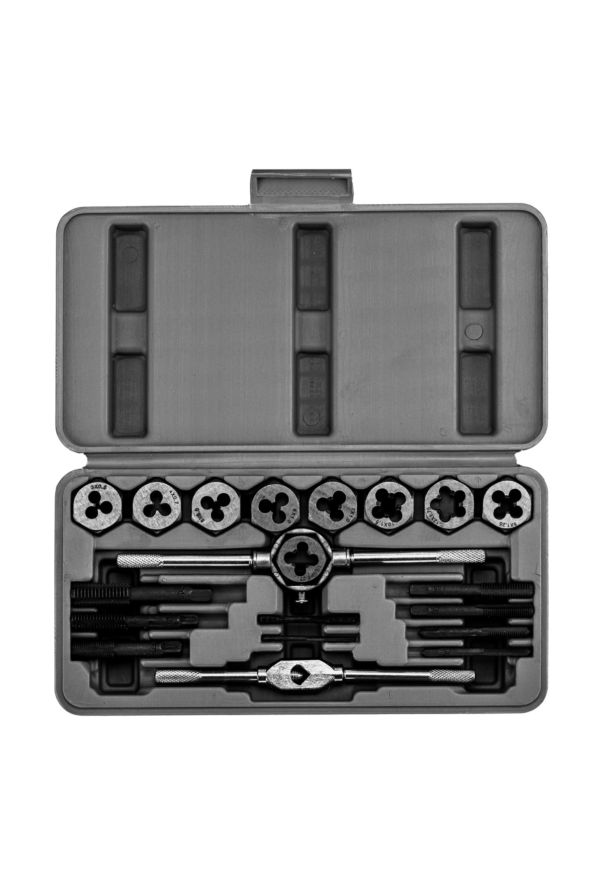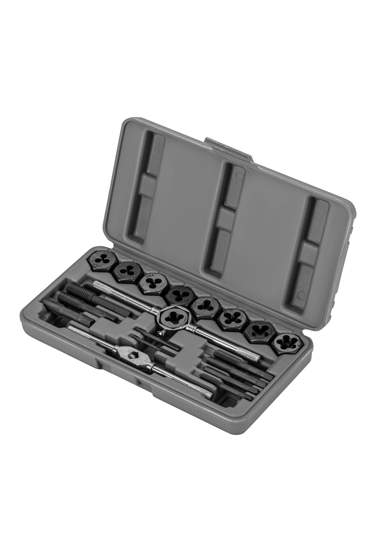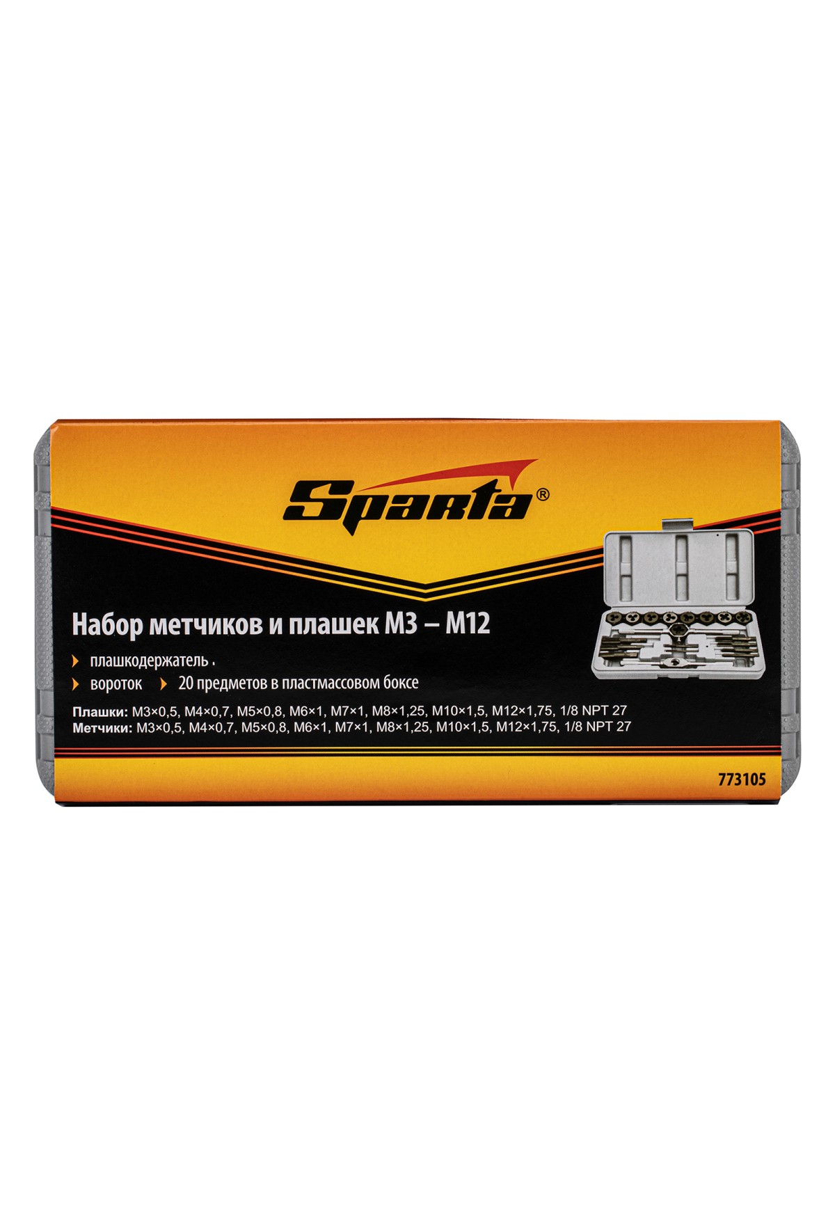 Технические характеристики Набор метчиков и плашек М3-М12, плашко-метчикодержатель, 20 предметов, пластиковый бокс Sparta