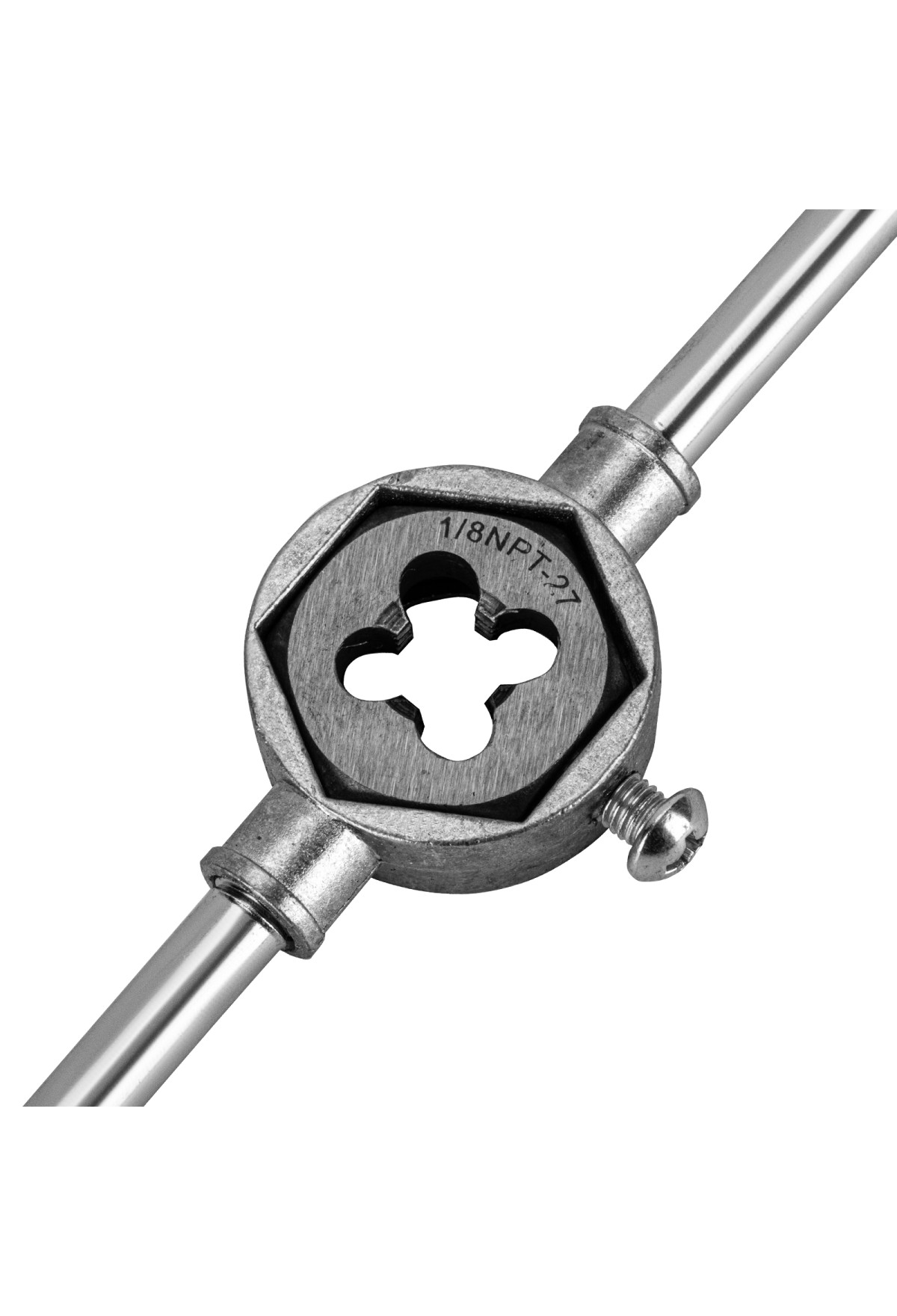- Получение ровной внешней резьбы — плашка закрепляется при помощи бокового винта и не проворачивается в держателе.