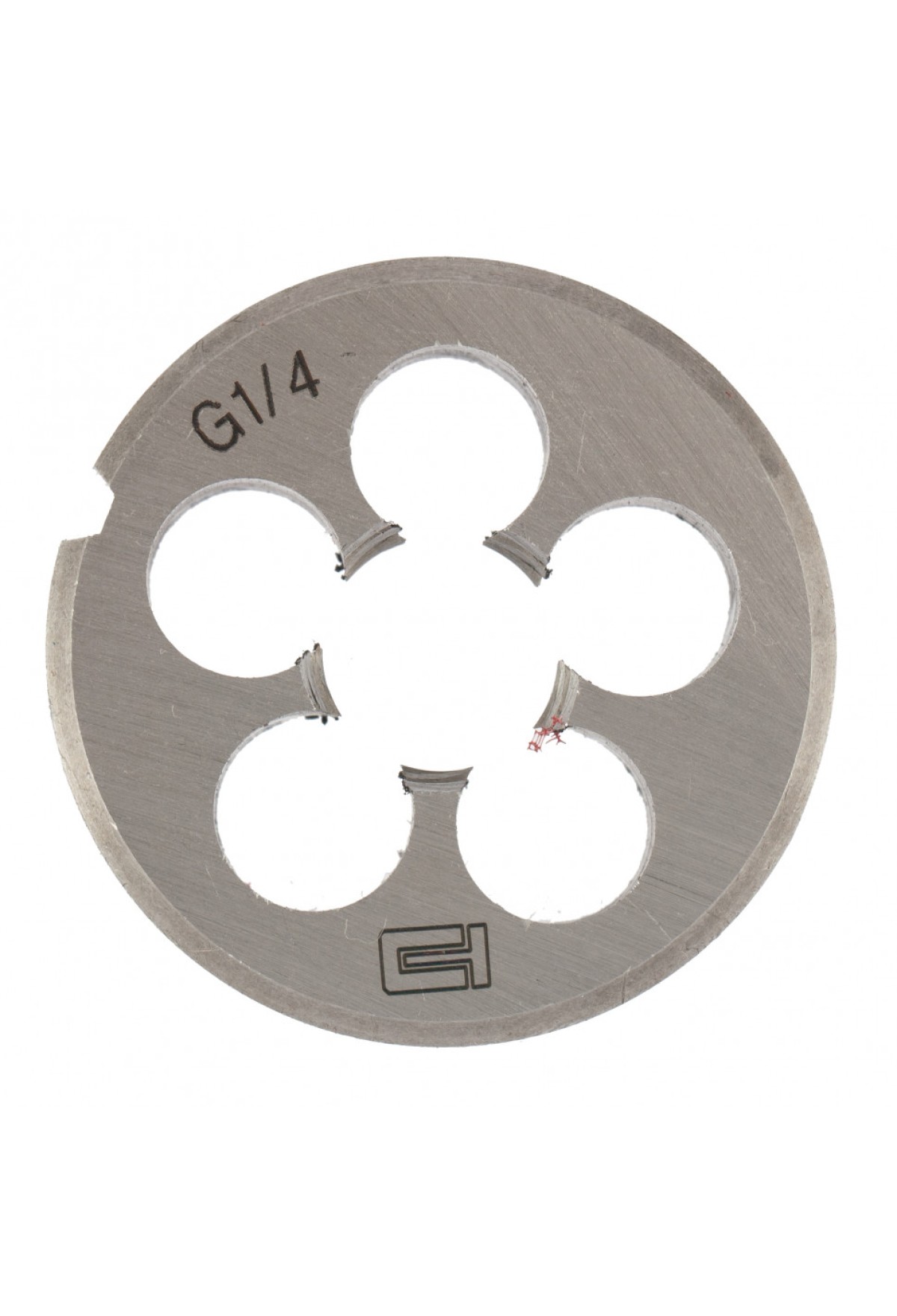 - Надежность и долговечность — плашка изготовлена из инструментальной стали 9XC, твердость режущих кромок составляет 60 HRC в соответствии с ГОСТом.