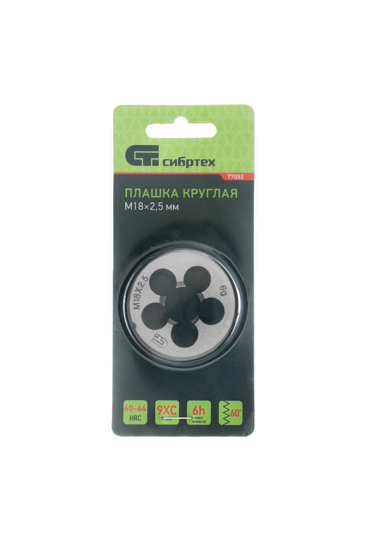 Технические характеристики Плашка М18 х 2.5 мм Сибртех