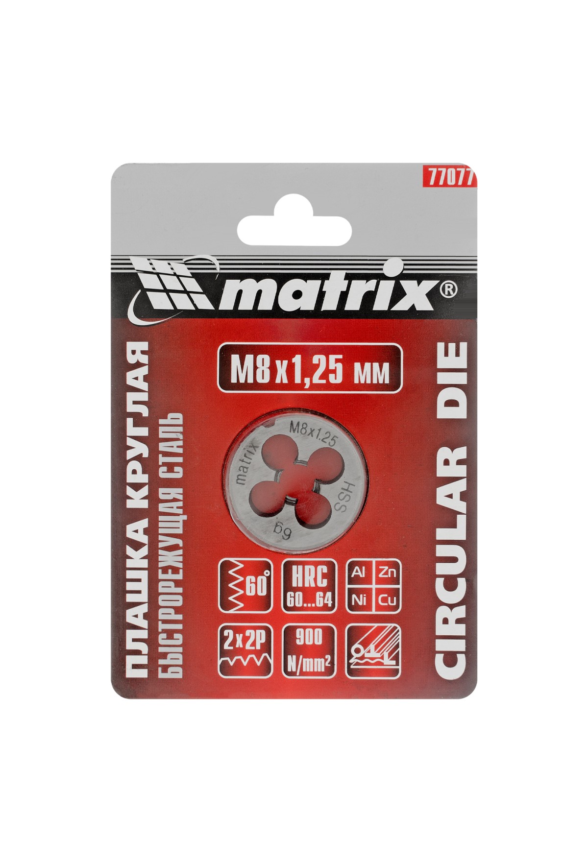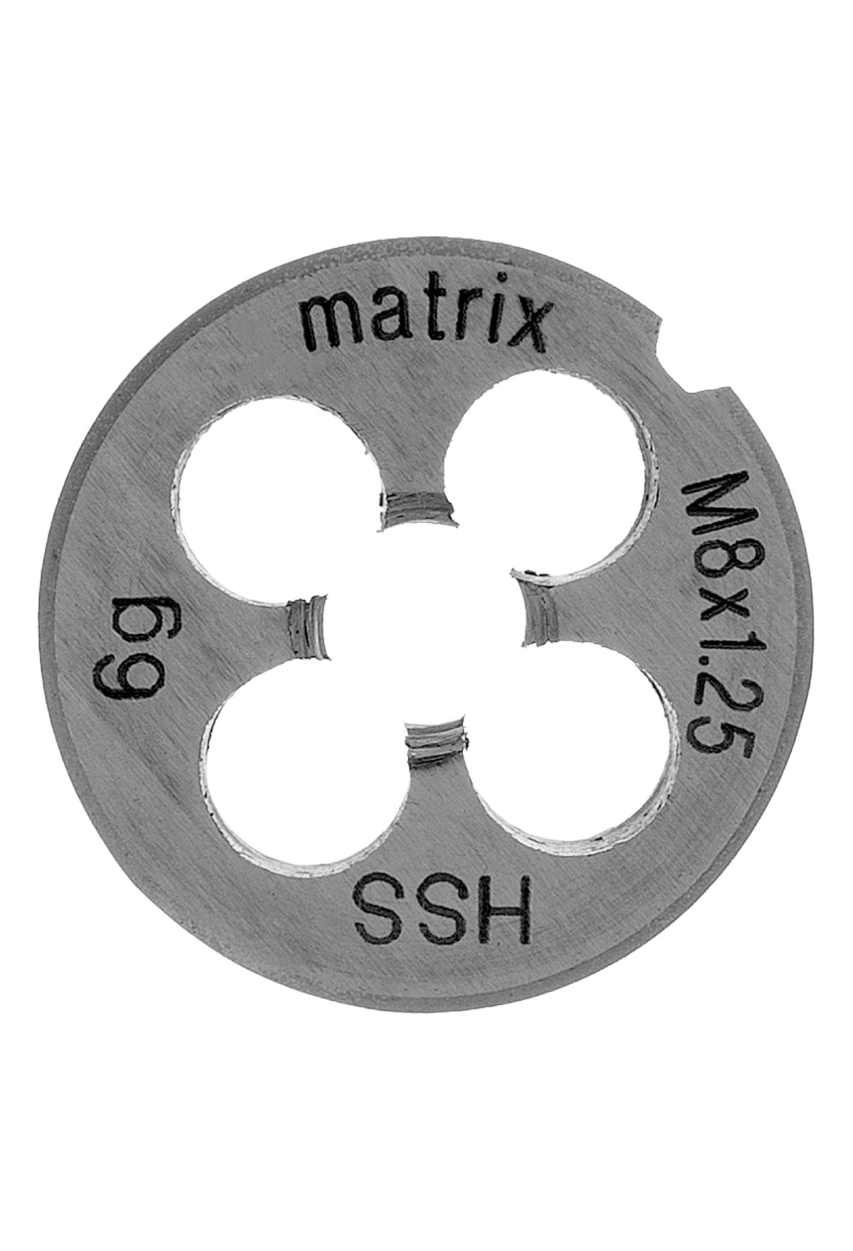 Плашка Matrix 77077 типоразмера М8 х 1,25 мм, из стали HSS, — резьбонарезной инструмент, предназначенный для восстановления старой или создания новой внешней метрической резьбы на металлических деталях. Для эксплуатации плашки не требуются особые навыки, что позволяет выполнять слесарные и монтажные работы в домашних условиях. Цельный корпус обеспечивает жесткое сцепление с деталью для получения высококачественной резьбы.