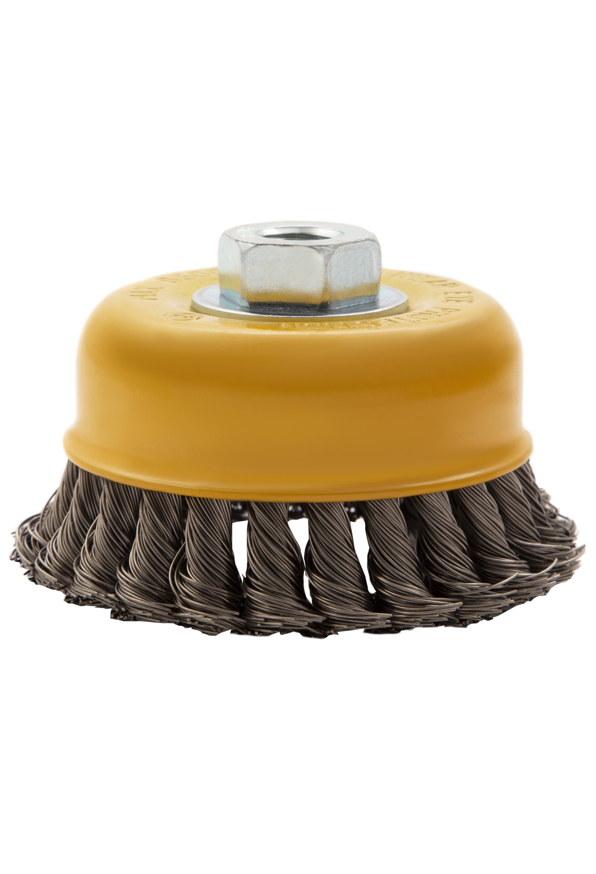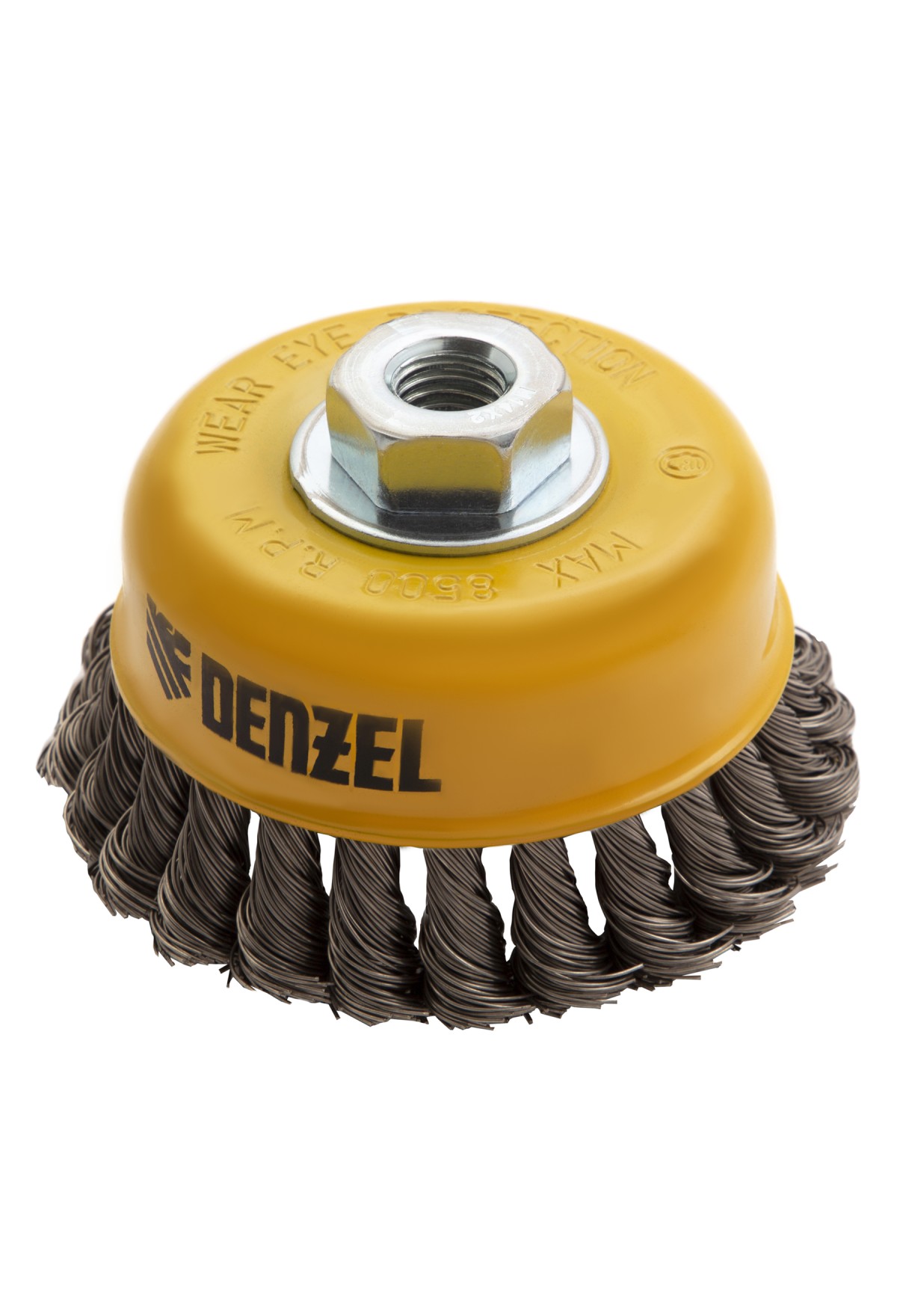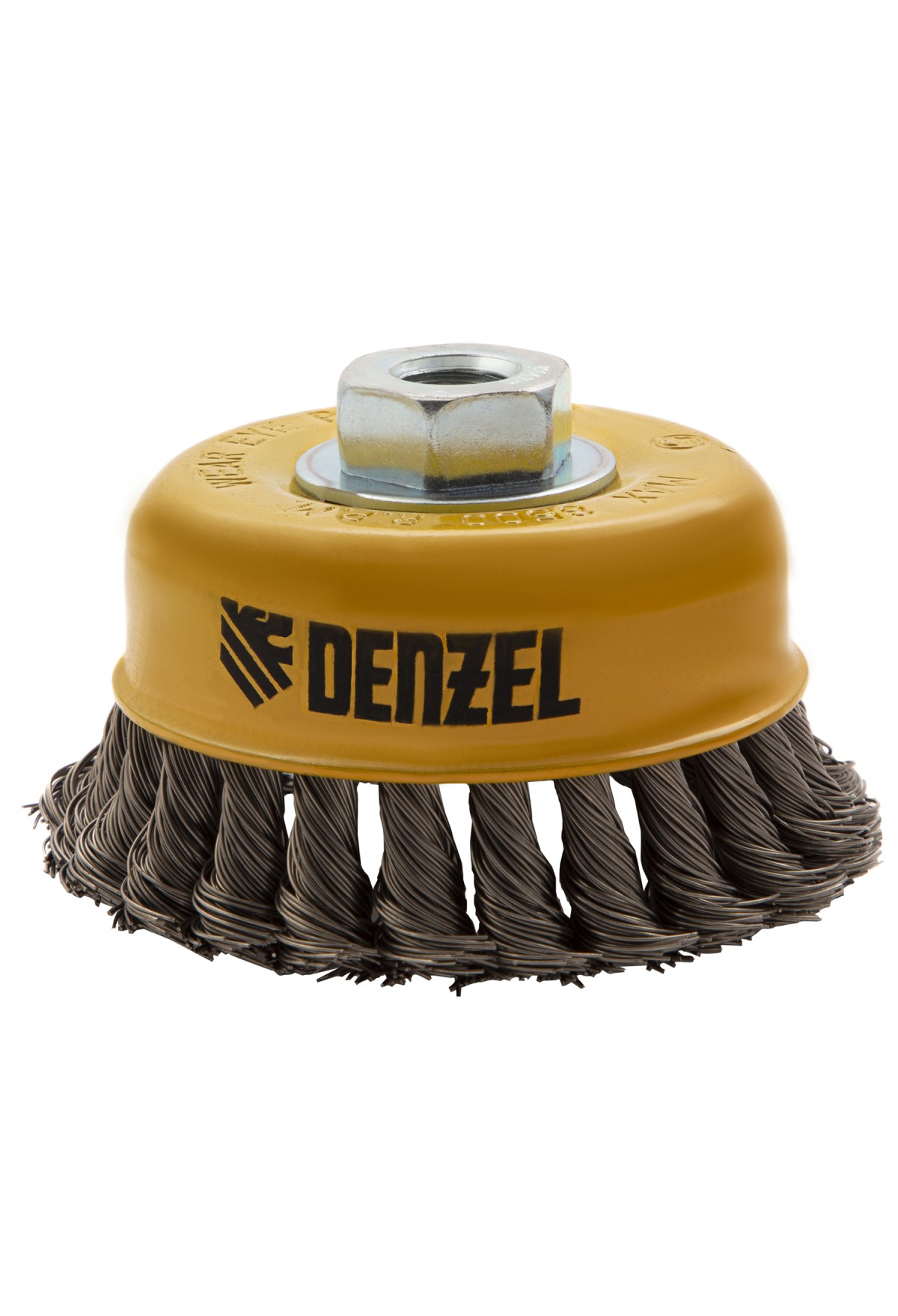 Щетка для УШМ «Чашка» Denzel 746283, М14, диаметром 100 мм, с щетиной из крученой нержавеющей проволоки диаметром 0,5 мм, предназначена для грубой очистки твердых поверхностей от ржавчины, лакокрасочных покрытий, загрязнений, удаления заусенцев, а также для зачистки сварных швов. Снимает толстый слой материала, идеально подходит для обработки изделий из нержавеющей стали. Щетка имеет форму чашки и позволяет очищать участки большой площади. Оснастку устанавливают на вал углошлифовальной машины. Рекомендуемая максимальная скорость вращения составляет 8500 об/мин. Во время работы следует использовать средства индивидуальной защиты — очки, респиратор, наушники, перчатки, а также специальную одежду и обувь. Щетка применяется в строительстве, на производстве, а также в быту.