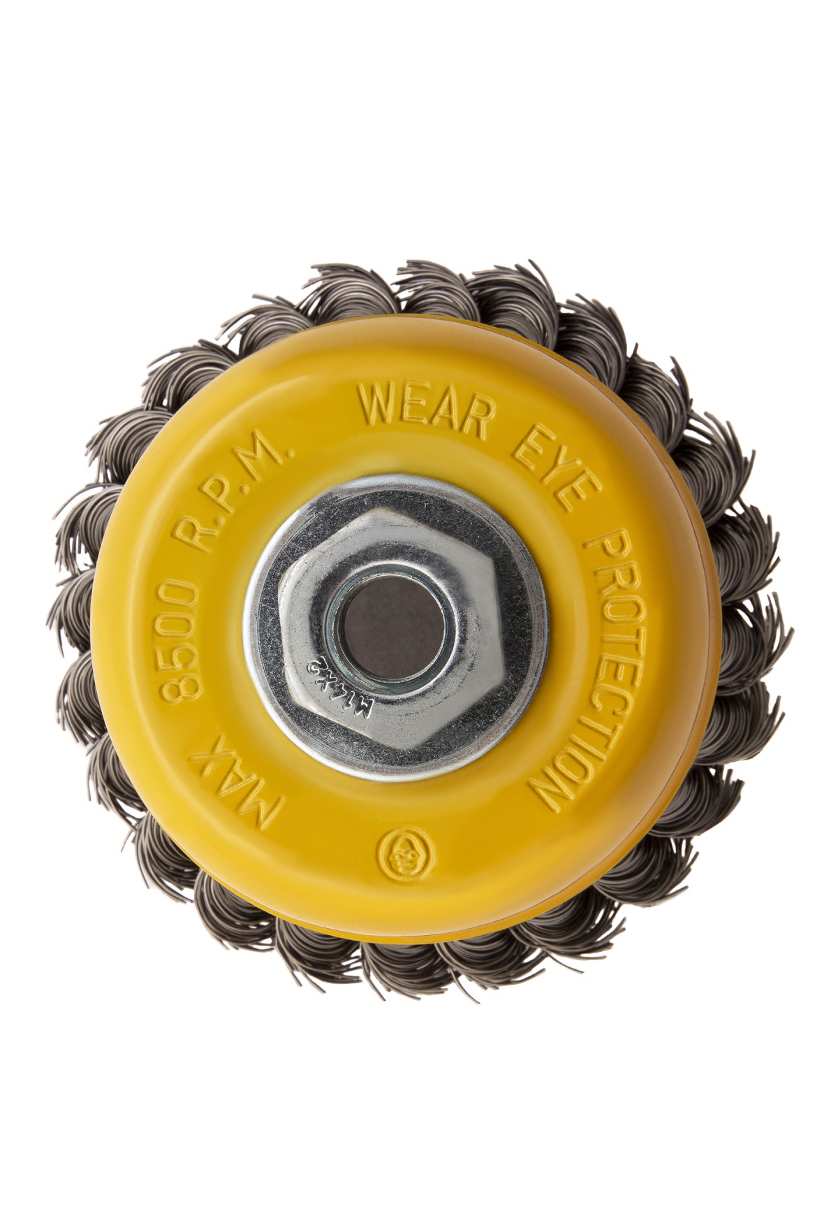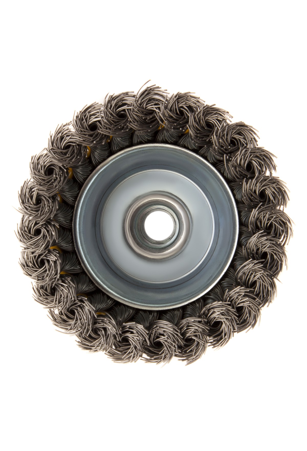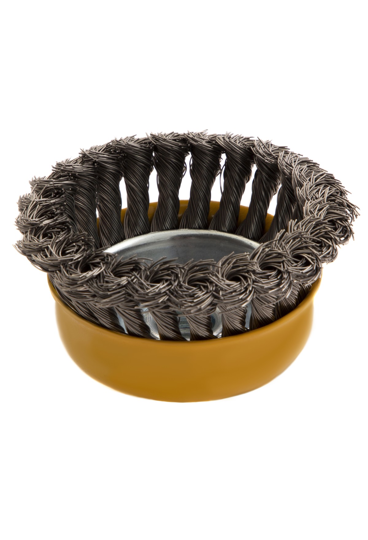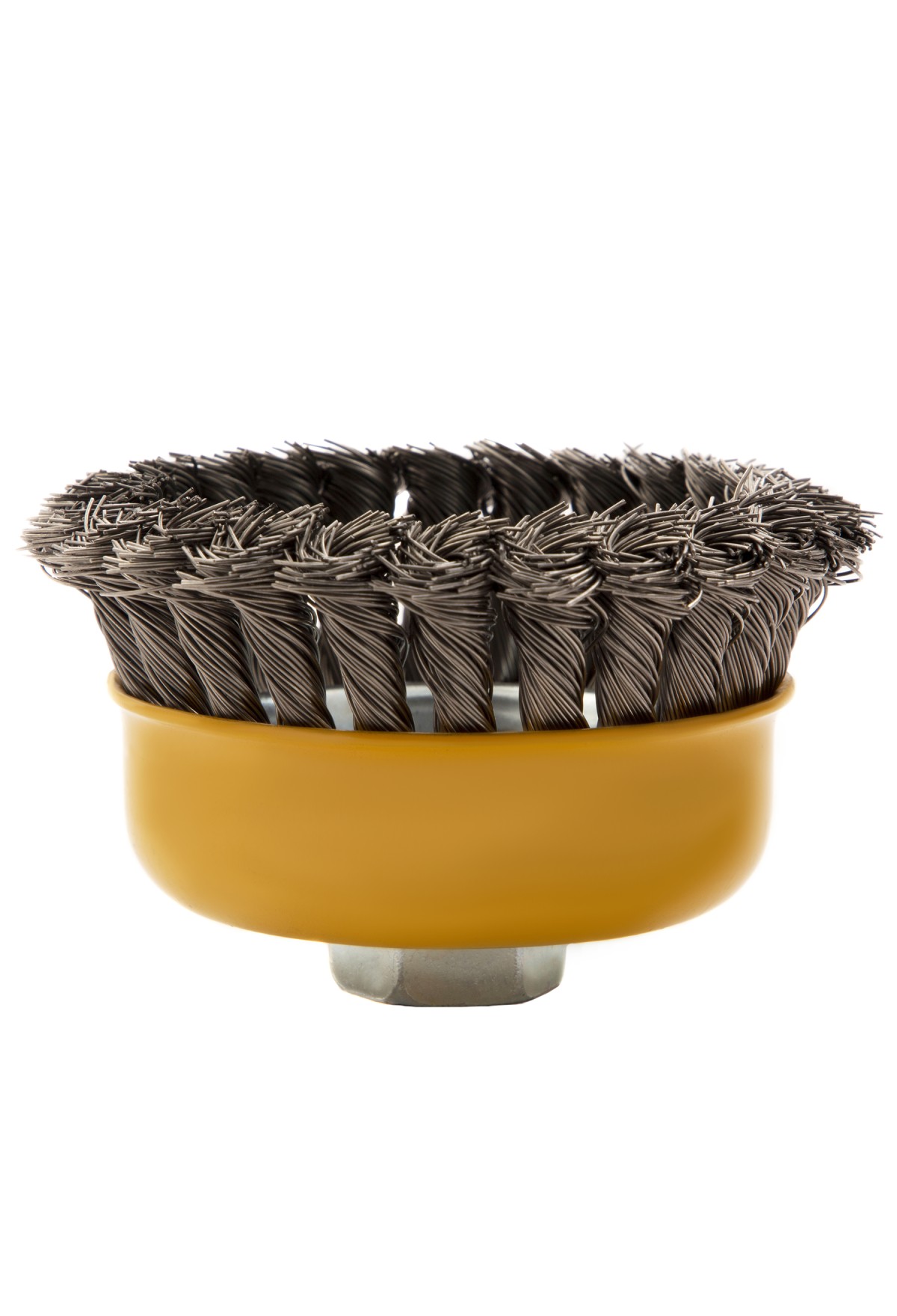 Щетка для УШМ «Чашка» Denzel 746283, М14, диаметром 100 мм, с щетиной из крученой нержавеющей проволоки диаметром 0,5 мм, предназначена для грубой очистки твердых поверхностей от ржавчины, лакокрасочных покрытий, загрязнений, удаления заусенцев, а также для зачистки сварных швов. Снимает толстый слой материала, идеально подходит для обработки изделий из нержавеющей стали. Щетка имеет форму чашки и позволяет очищать участки большой площади. Оснастку устанавливают на вал углошлифовальной машины. Рекомендуемая максимальная скорость вращения составляет 8500 об/мин. Во время работы следует использовать средства индивидуальной защиты — очки, респиратор, наушники, перчатки, а также специальную одежду и обувь. Щетка применяется в строительстве, на производстве, а также в быту.