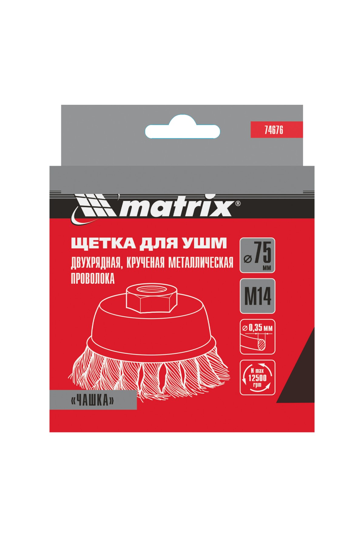 Двухрядная щетка Matrix «Чашка» 74676 диаметром 75 мм, с щетиной из крученой проволоки толщиной 0,35 мм, устанавливается на вал углошлифовальной машины с помощью гайки М14. Рекомендованная максимальная скорость вращения — до 12500 об/мин. Оснастка оптимальна для грубой (черновой) обработки: снятия старого слоя лакокрасочного покрытия и ржавчины, удаления загрязнений, зачистки сварных швов. Эффективно справляется с зачисткой больших поверхностей, подходит для выполнения работ повышенной сложности.