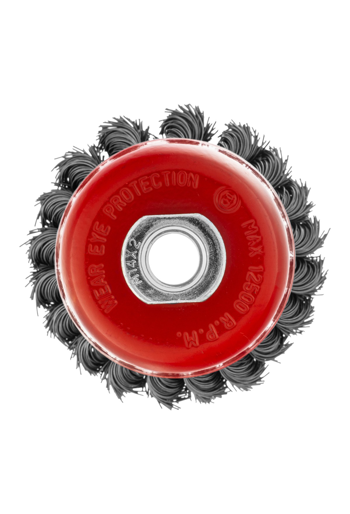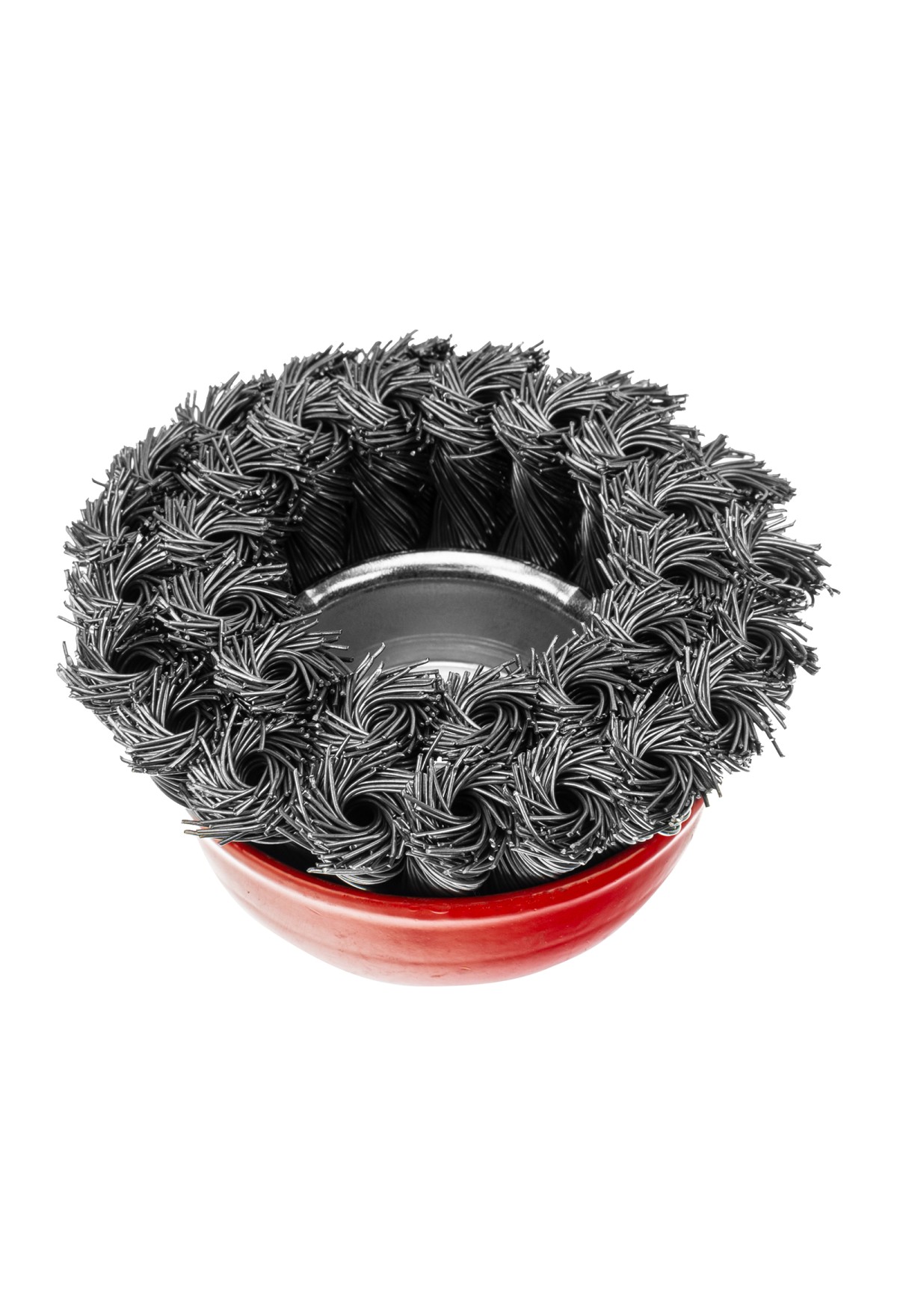 • Щетка для УШМ, 75 мм, М14, "чашка", двухрядная, крученая проволока 0.5 мм Matrix