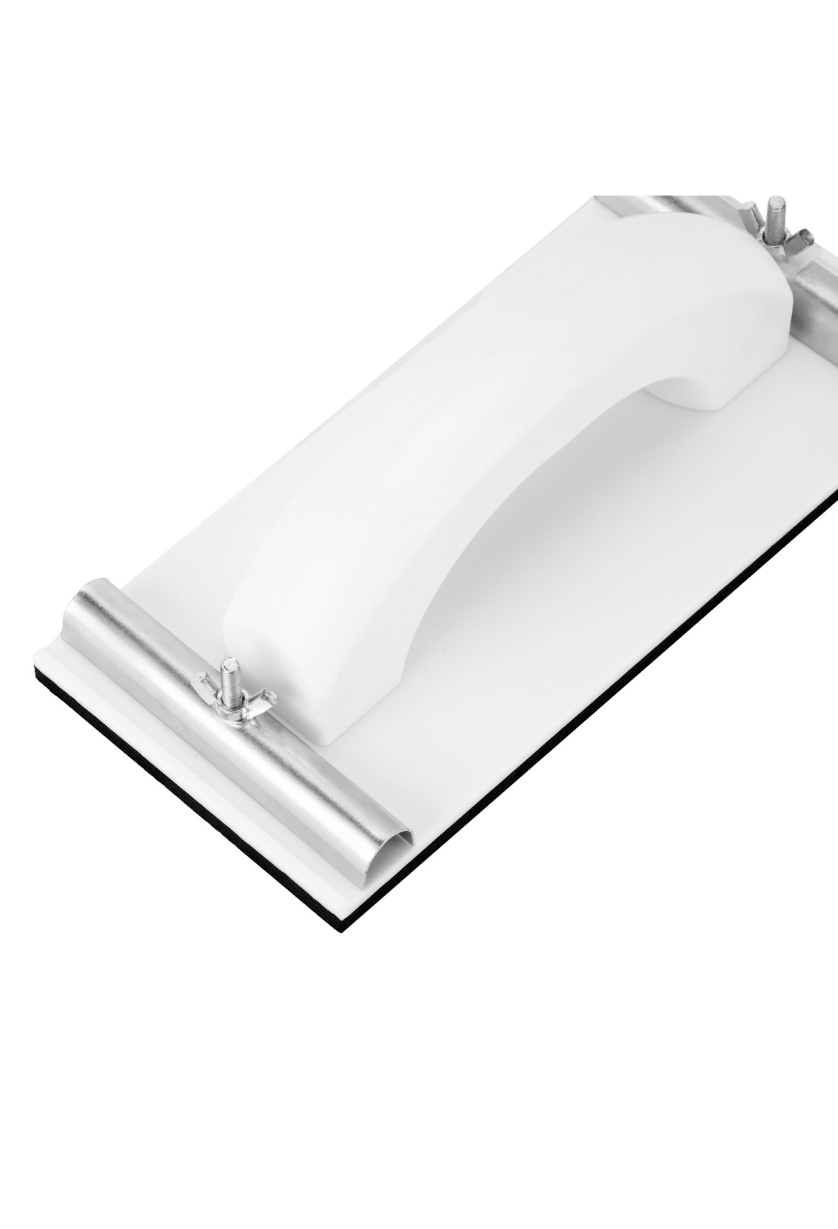 Пластиковый сеткодержатель Sparta 758475 с подошвой 230 х 105 мм, с зажимами, используется для ручного шлифования деревянных, шпатлеванных, металлических, пластмассовых и прочих твердых поверхностей. Сеткодержатель фиксирует абразивную стеклосетку или шлифлист и позволяет удалять старые отделочные покрытия, подготавливать поверхность под покраску, а также выполнять чистовую обработку.