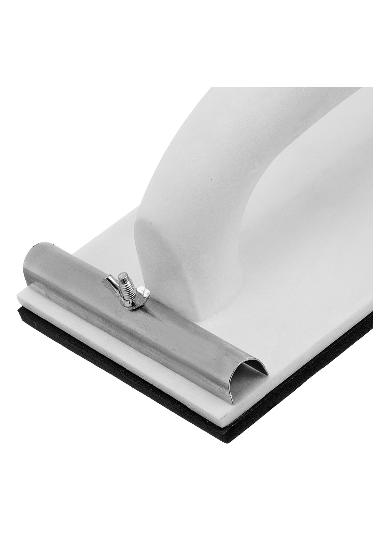 - Надежная фиксация абразивного материала — благодаря винтовым зажимам сетка или шлифлист не смещается во время работы.