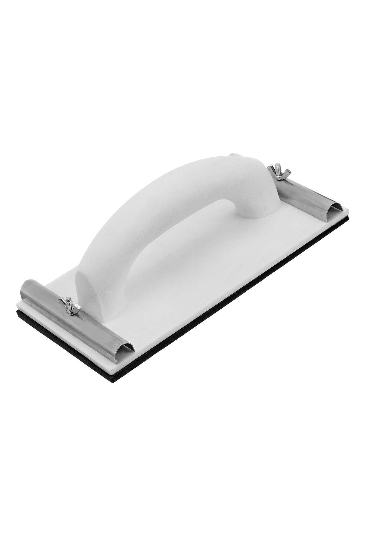 Пластиковый сеткодержатель Matrix 75853 с подошвой 230 х 120 мм, с зажимами, используется для ручного шлифования деревянных, шпатлеванных, металлических, пластмассовых и прочих твердых поверхностей. Сеткодержатель фиксирует абразивную стеклосетку или шлифлист и позволяет удалять старые отделочные покрытия, подготавливать поверхность под покраску, а также выполнять чистовую обработку.