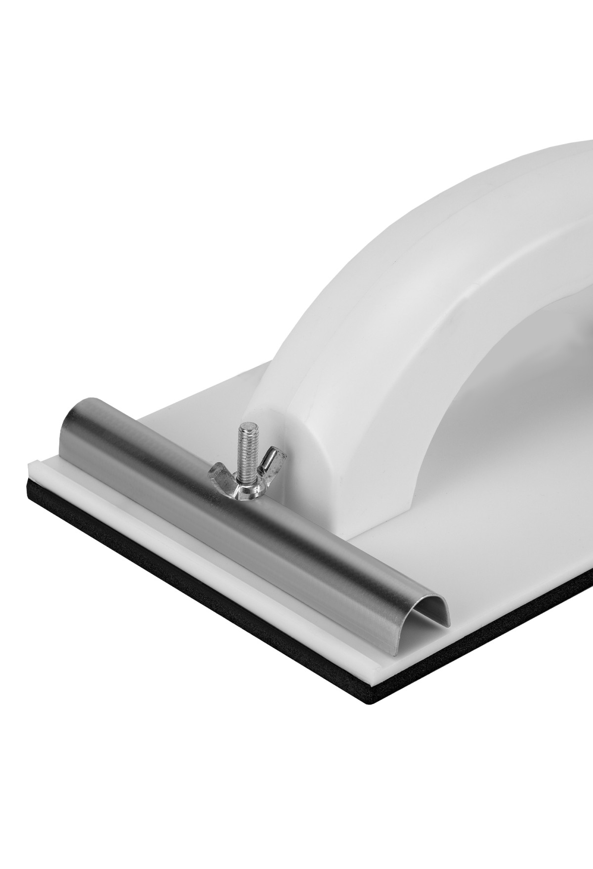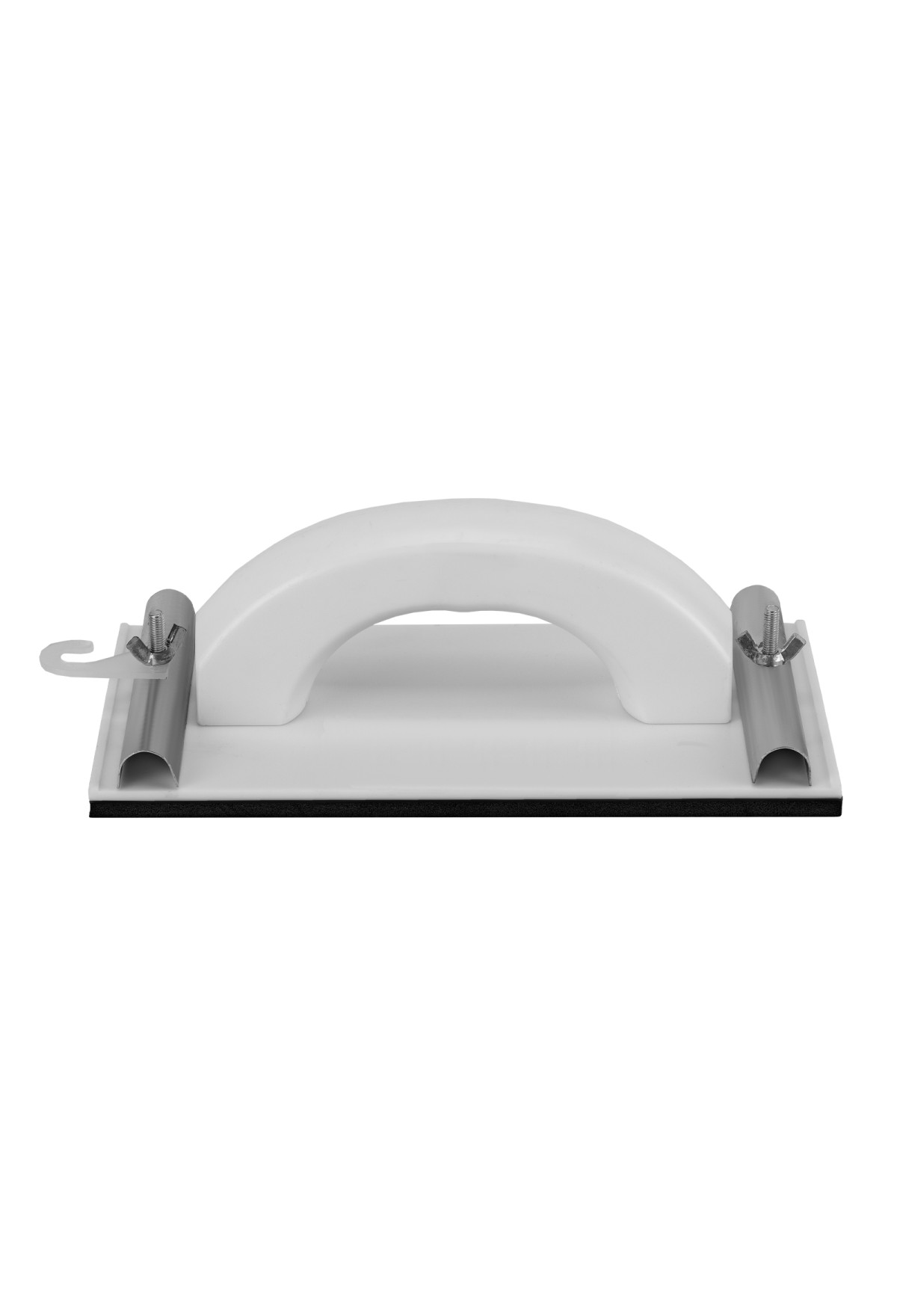 Пластиковый сеткодержатель Sparta 758515 с подошвой 230 х 120 мм, с зажимами, используется для ручного шлифования деревянных, шпатлеванных, металлических, пластмассовых и прочих твердых поверхностей. Сеткодержатель фиксирует абразивную стеклосетку или шлифлист и позволяет удалять старые отделочные покрытия, подготавливать поверхность под покраску, а также выполнять чистовую обработку.