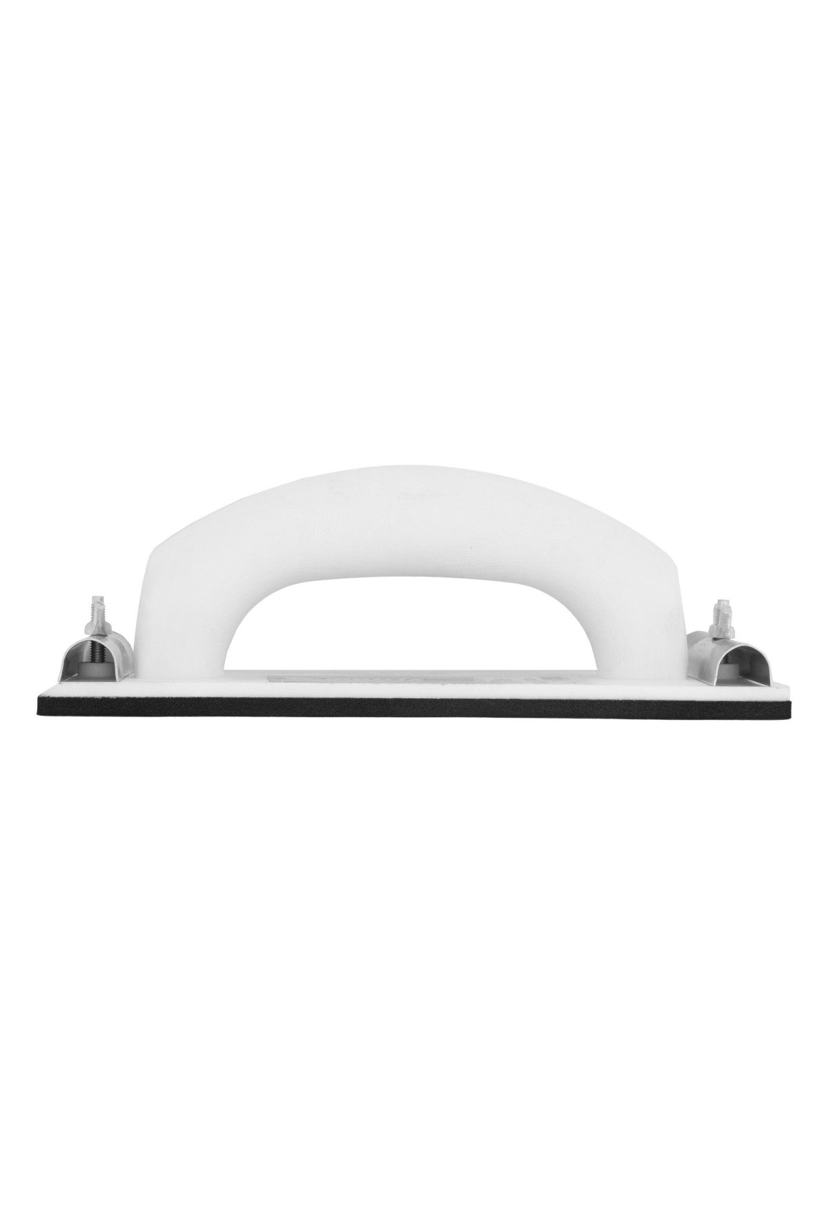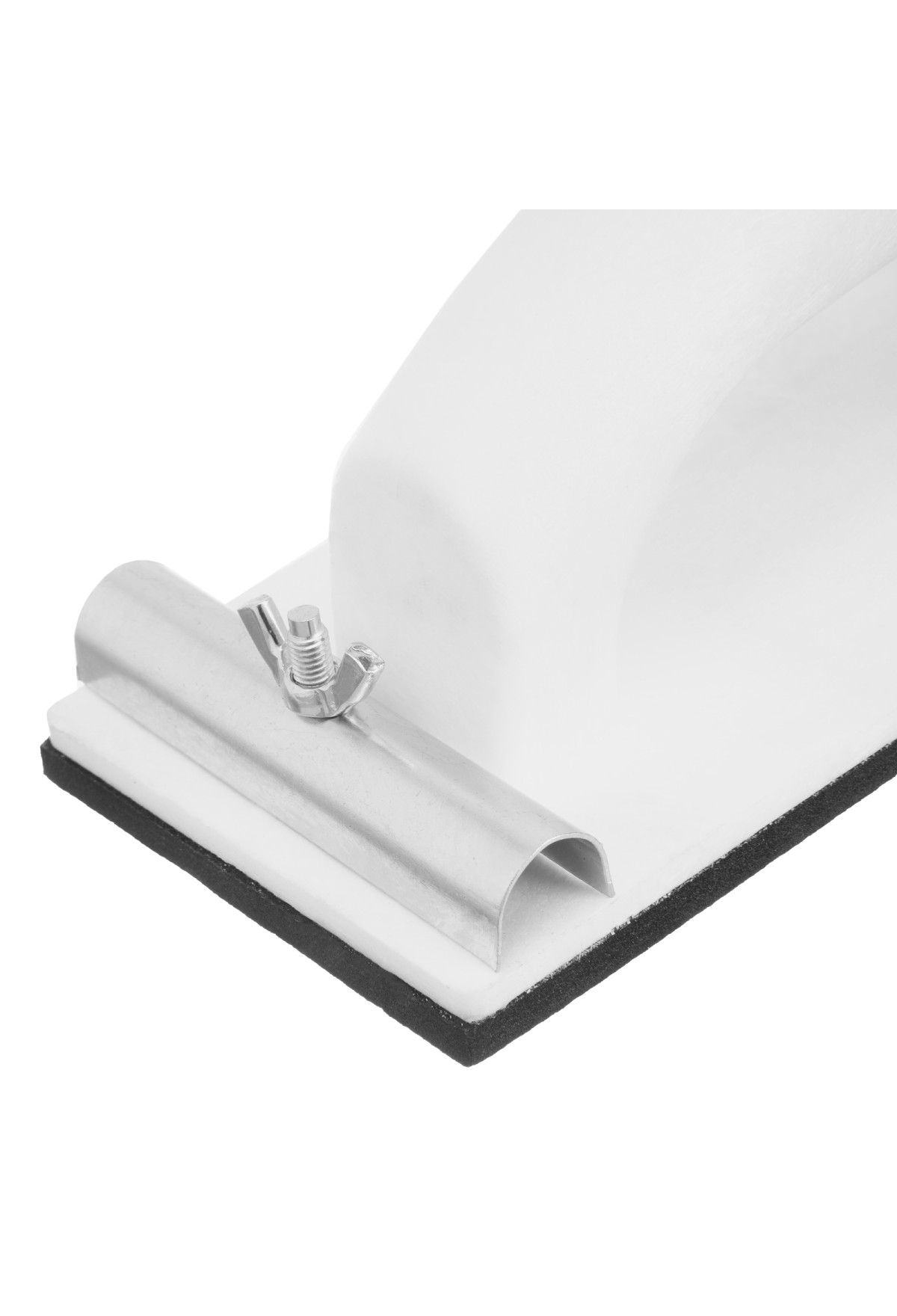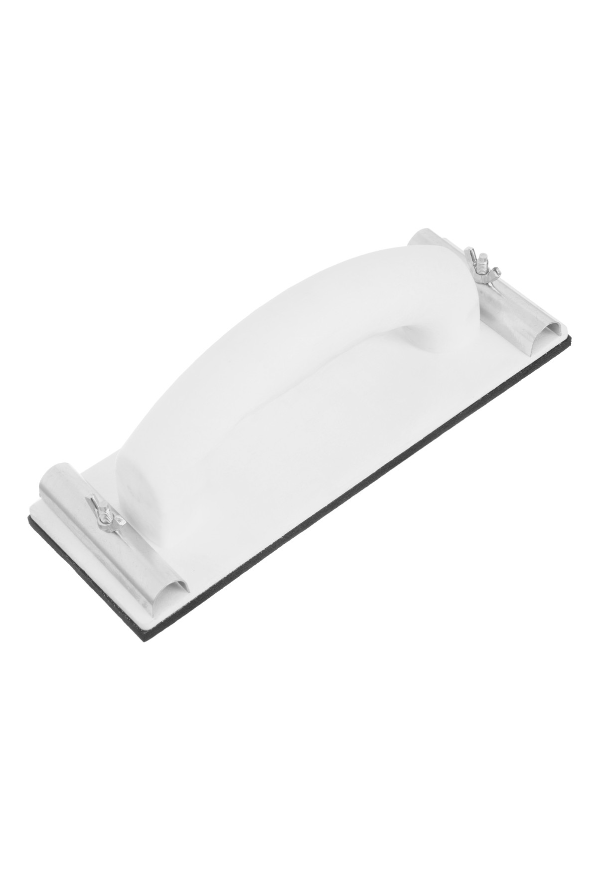 Пластиковый сеткодержатель Matrix 75849 с подошвой 230 х 80 мм, с зажимами, используется для ручного шлифования деревянных, шпатлеванных, металлических, пластмассовых и прочих твердых поверхностей. Сеткодержатель фиксирует абразивную стеклосетку или шлифлист и позволяет удалять старые отделочные покрытия, подготавливать поверхность под покраску, а также выполнять чистовую обработку.