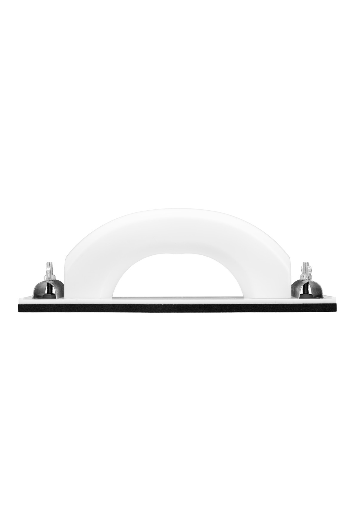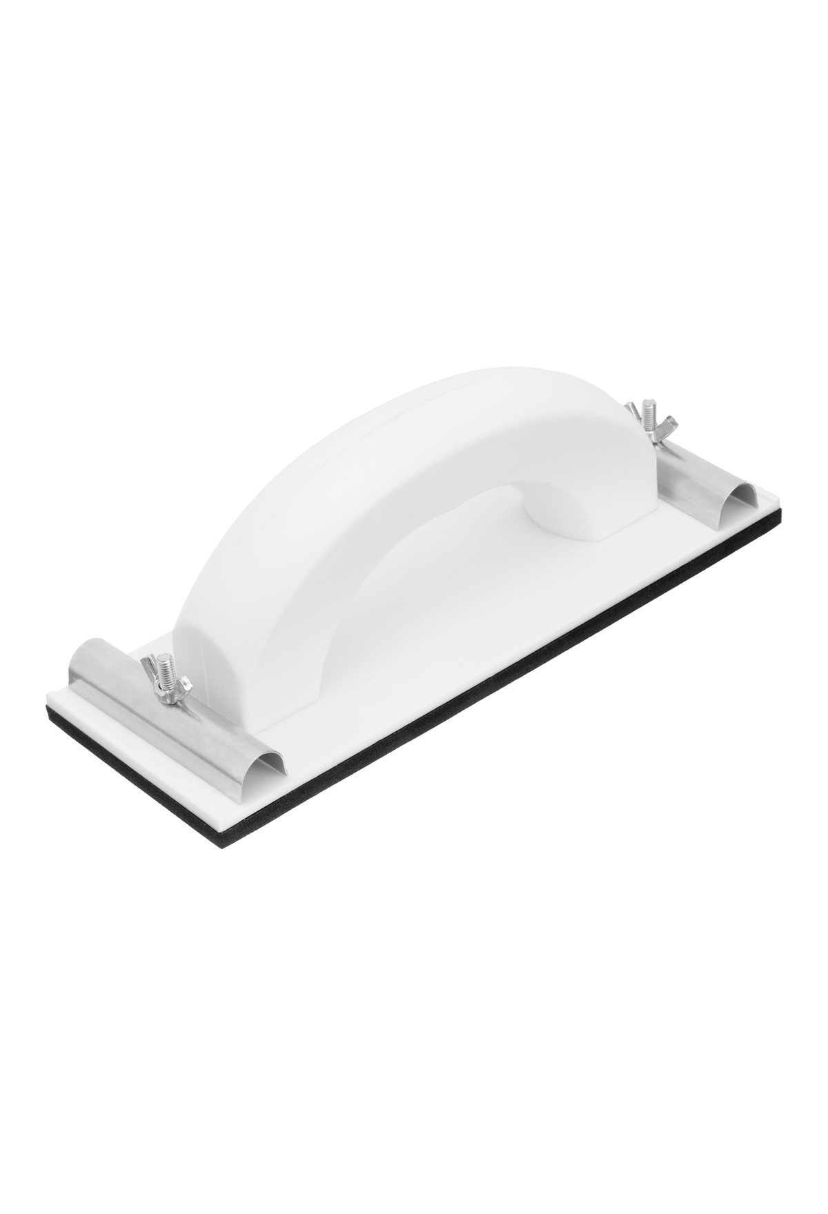 Пластиковый сеткодержатель Sparta 758455 с подошвой 230 х 80 мм, с зажимами, используется для ручного шлифования деревянных, шпатлеванных, металлических, пластмассовых и прочих твердых поверхностей. Сеткодержатель фиксирует абразивную стеклосетку или шлифлист и позволяет удалять старые отделочные покрытия, подготавливать поверхность под покраску, а также выполнять чистовую обработку.
