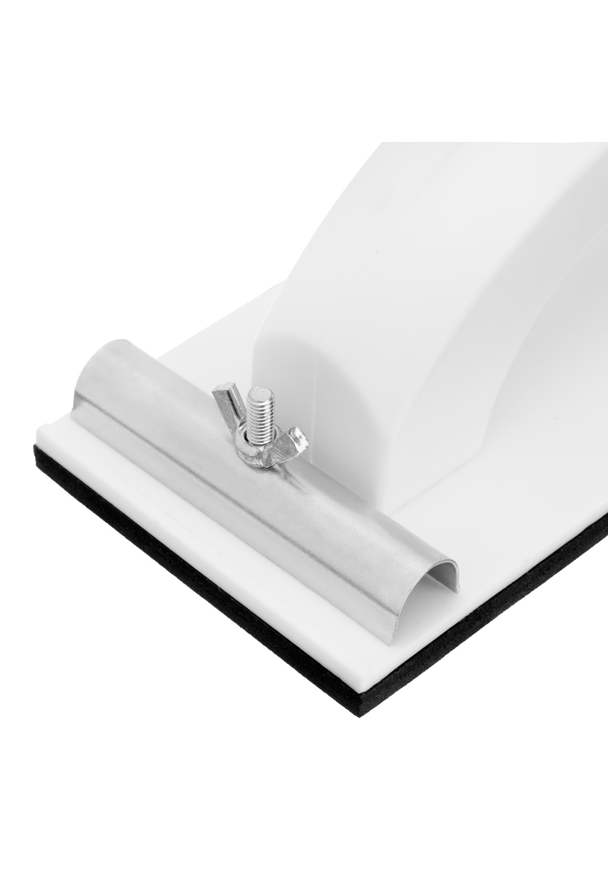 - Надежная фиксация абразивного материала — благодаря винтовым зажимам сетка или шлифлист не смещается во время работы.
