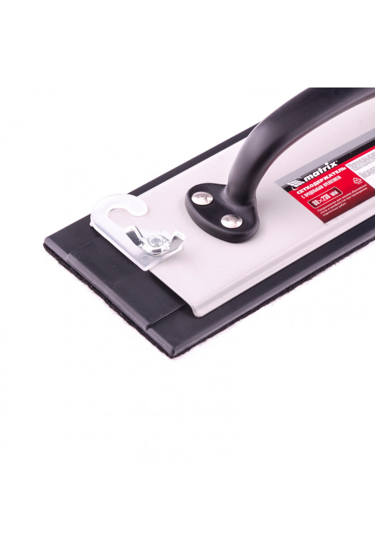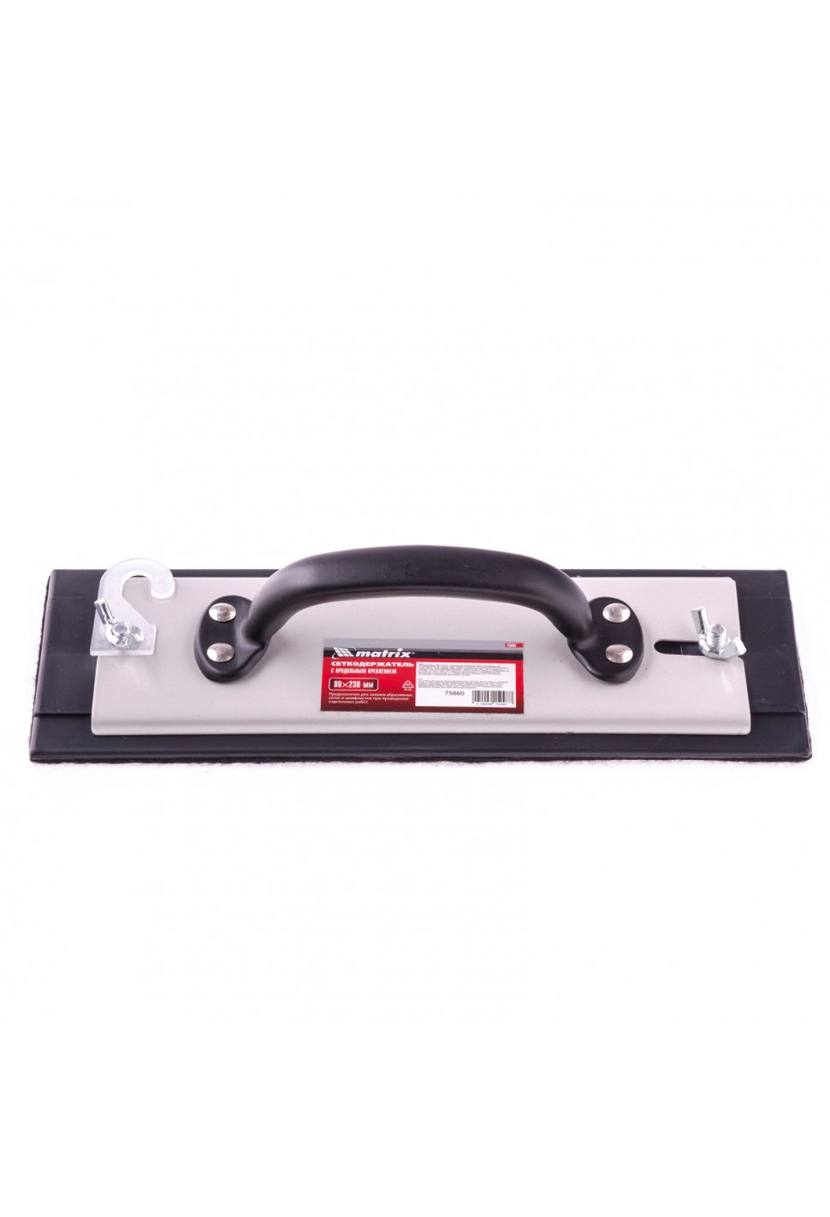 Сеткодержатель Matrix 75860 с подошвой размером 230 х 80 мм, с продольным креплением, используется для подготовки твердых поверхностей к малярно-отделочным и кузовным работам. Надежно фиксирует сетки или шлифлисты любой зернистости, позволяя проводить как грубую, так и тонкую шлифовку древесины, металла, шпатлевки или пластика.