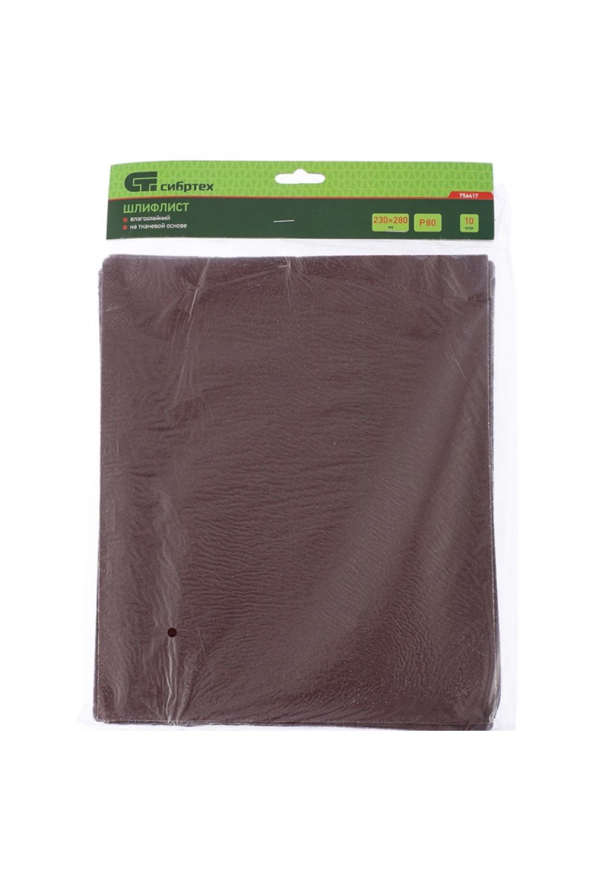 Шлифлист на тканевой основе, P 80, 230 х 280 мм, 10 шт, влагостойкий Сибртех