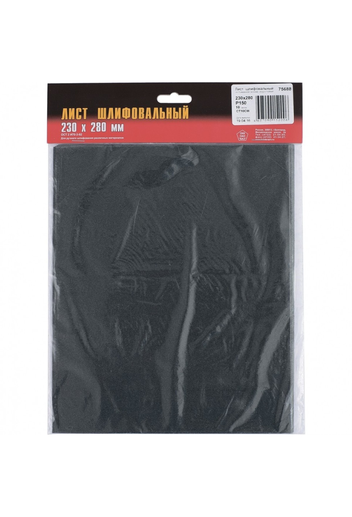 Шлифлист на бумажной основе, CT10C W, зернистость 25Н(P 60), 230 х 280 мм, 10 шт, водостойкий, "БАЗ" Россия