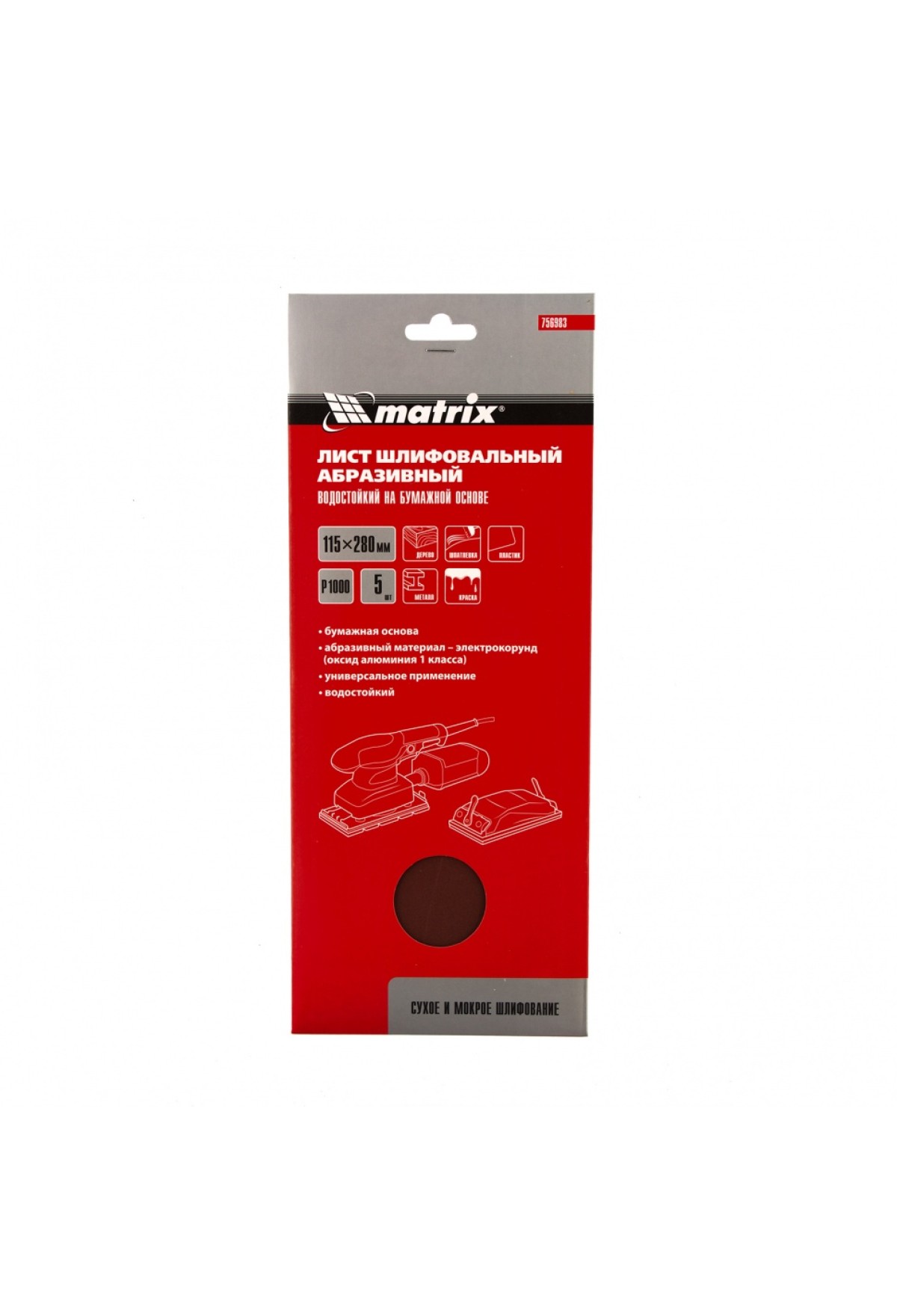 Водостойкий шлифлист на бумажной основе Matrix 756983 размером 115 х 280 мм, с зернистостью P 1000, 5 шт., в упаковке, оптимален для финишной обработки. Устанавливается в плоскошлифовальную машину, также может применяться для ручной обработки. Абразивом является мелкозернистый электрокорунд P 1000, оптимальный для получения гладкой (зеркальной) поверхности.