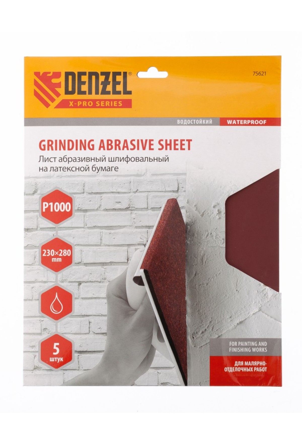 Технические характеристики Шлифлист на бумажной основе, P 1000, 230 х 280 мм, 5 шт, латексный, водостойкий Denzel