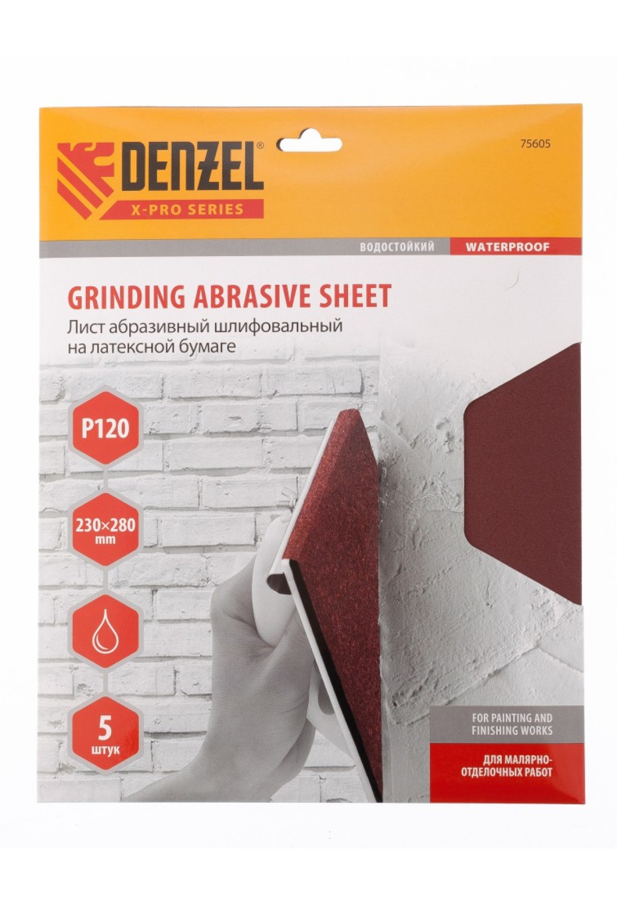 Шлифлист на бумажной основе, P 120, 230 х 280 мм, 5 шт, латексный, водостойкий Denzel 0 175.00 р. 201.00 р.