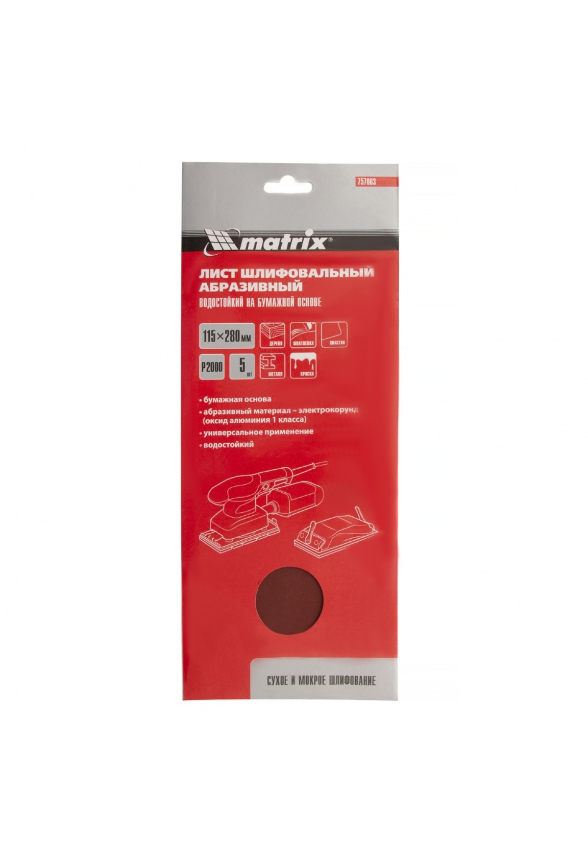 Технические характеристики Шлифлист на бумажной основе, P 2000, 115 х 280 мм, 5 шт, водостойкий Matrix