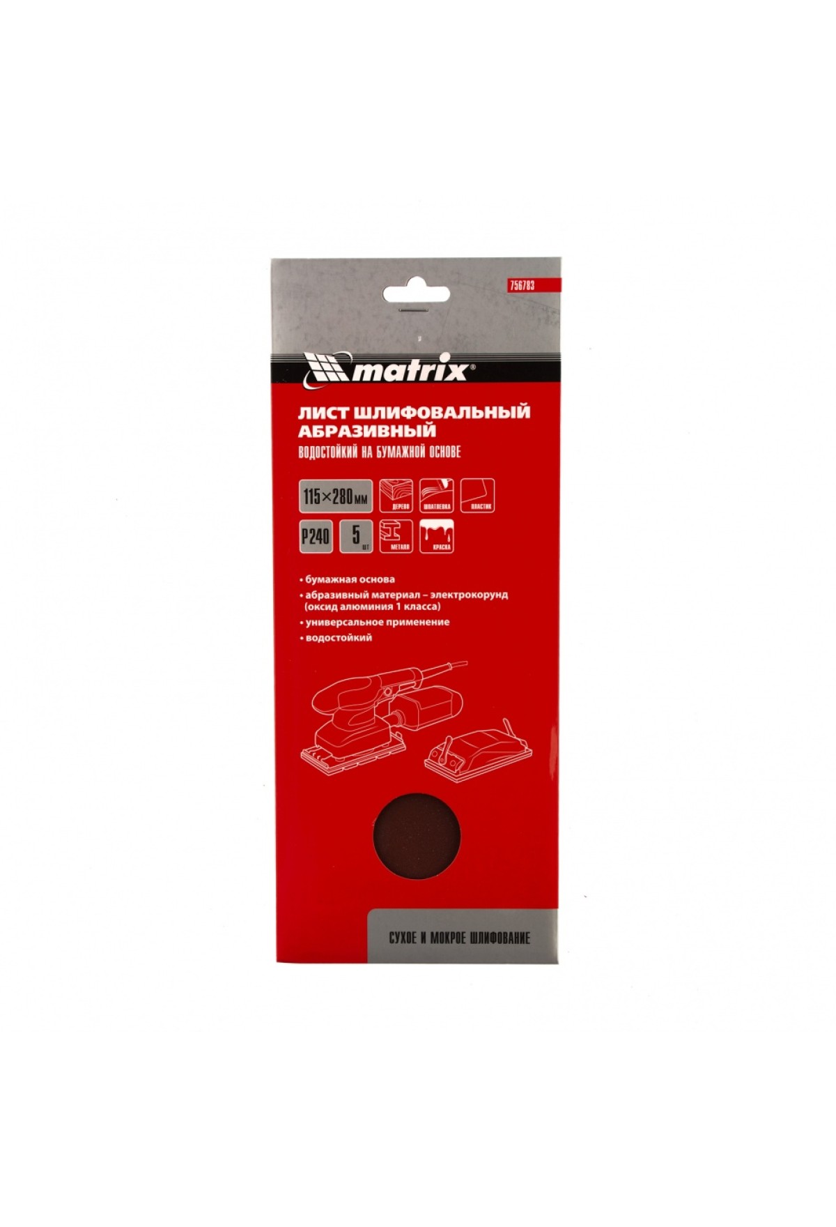 Технические характеристики Шлифлист на бумажной основе, P 240, 115 х 280 мм, 5 шт, водостойкий Matrix