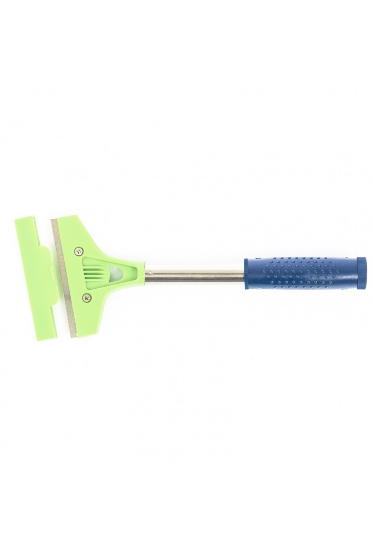 Скребок Сибртех 79541 длиной 250 мм, с фиксированным полотном шириной 100 мм и металлической обрезиненной рукояткой, имеет двустороннее лезвие, острой стороной которого удобно счищать старую краску, монтажную пену, наклейки и другие загрязнения с гладких поверхностей. Тупой стороной лезвия скребок эффективно удаляет остатки строительных смесей, цемента и шпаклевки. Инструмент можно использовать для плитки, стеклянных и керамических поверхностей. Лезвие является сменным, поэтому скребок подходит для длительного использования. Изделие пригодится во время ремонта, а также будет полезно в быту.