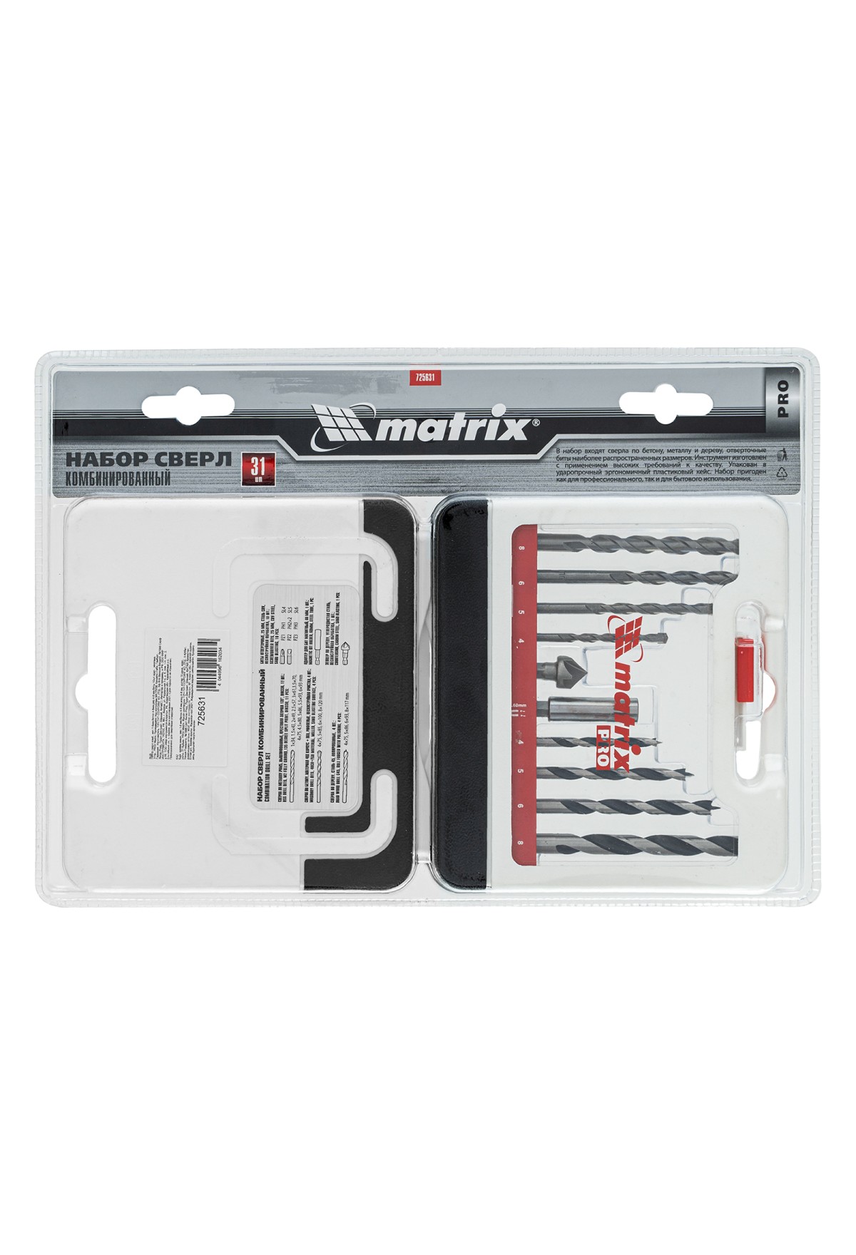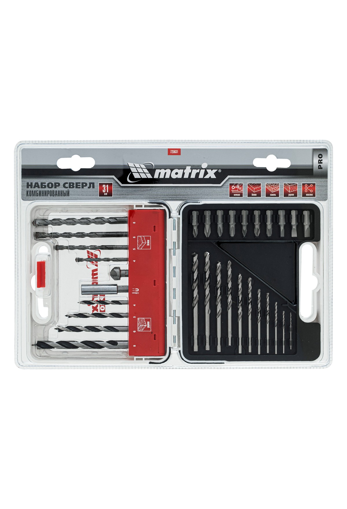 Комбинированный набор Matrix PRO 725631 — универсальное решение для мастеров, т. к. он содержит 31 предмет: отверточные биты (10 штук) и адаптер к ним, зенковку и сверла по дереву 4-8 мм, сверла по бетону 4-8 мм и сверла по металлу 1-6 мм. Оснастка подходит как для бытового использования, так и решения профессиональных задач.