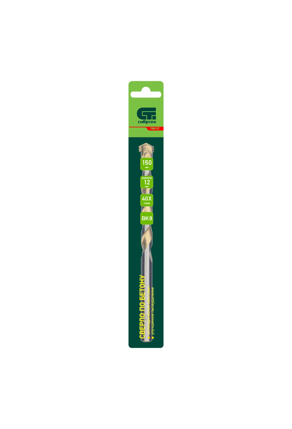 Сверло по бетону Сибртех 708127 диаметром 12 мм и длиной 150 мм, с цилиндрическим хвостовиком и улучшенным пылеудалением, предназначено для сверления в ударном режиме бетона и кирпича. Пригодится во время строительных и ремонтных работ.
