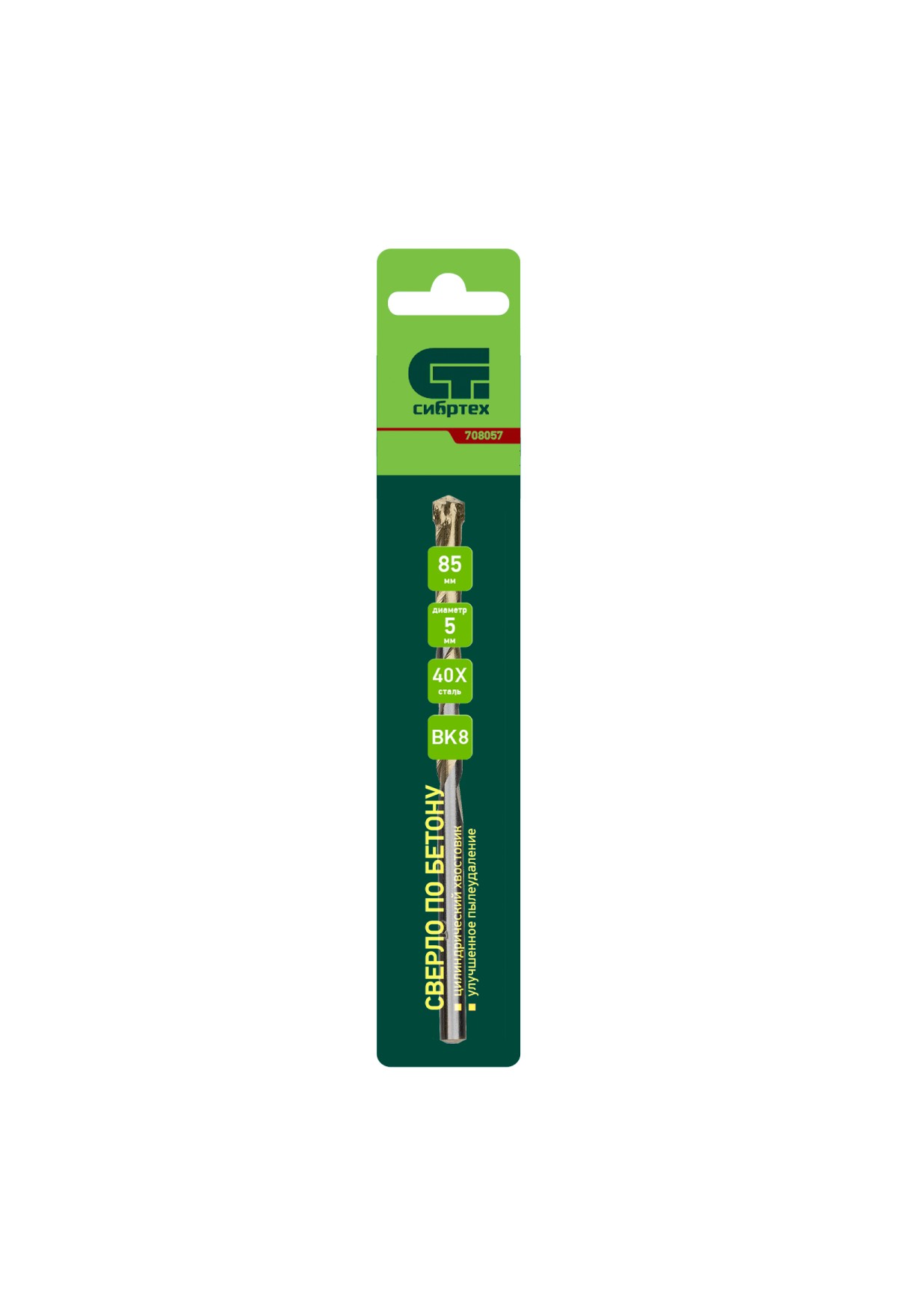 Сверло по бетону Сибртех 708057 диаметром 5 мм и длиной 85 мм, с цилиндрическим хвостовиком и улучшенным пылеудалением, предназначено для сверления в ударном режиме бетона и кирпича. Пригодится во время строительных и ремонтных работ.