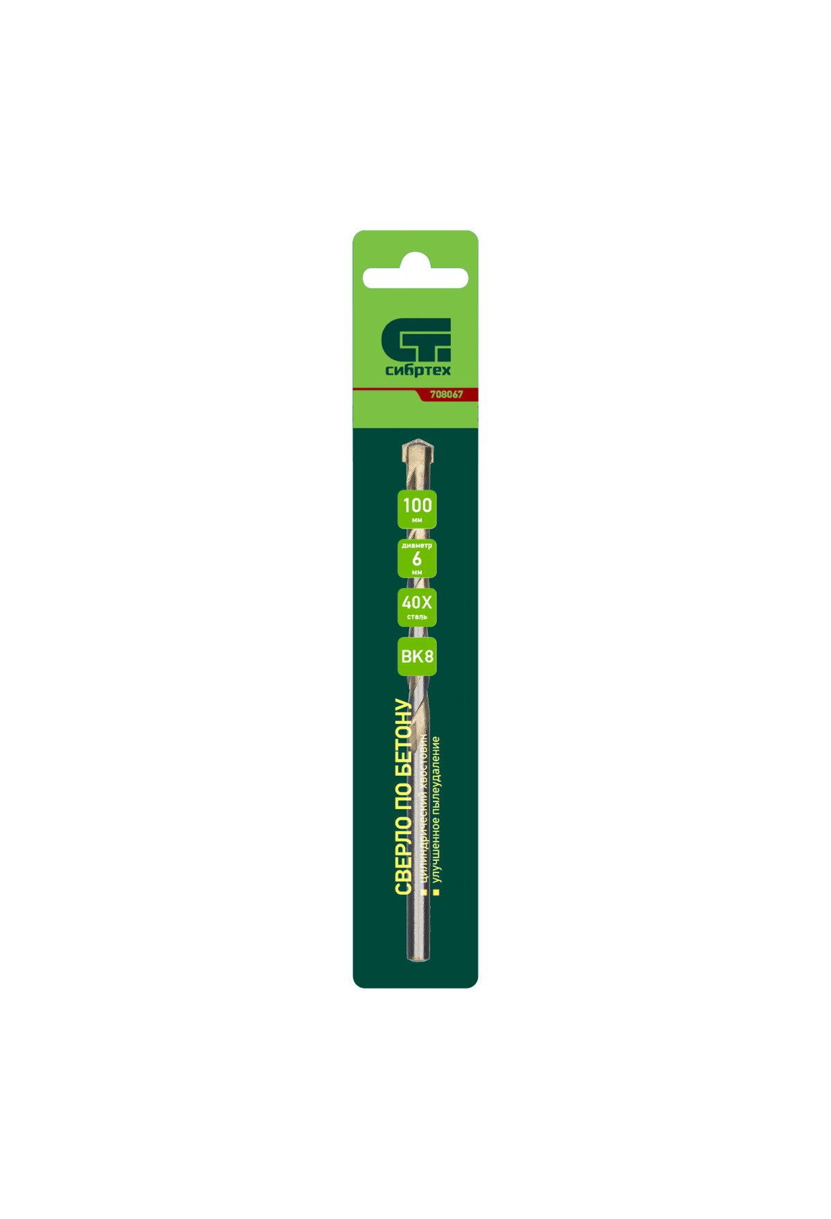 Сверло по бетону Сибртех 708067 диаметром 6 мм и длиной 100 мм, с цилиндрическим хвостовиком и улучшенным пылеудалением, предназначено для сверления в ударном режиме бетона и кирпича. Пригодится во время строительных и ремонтных работ.