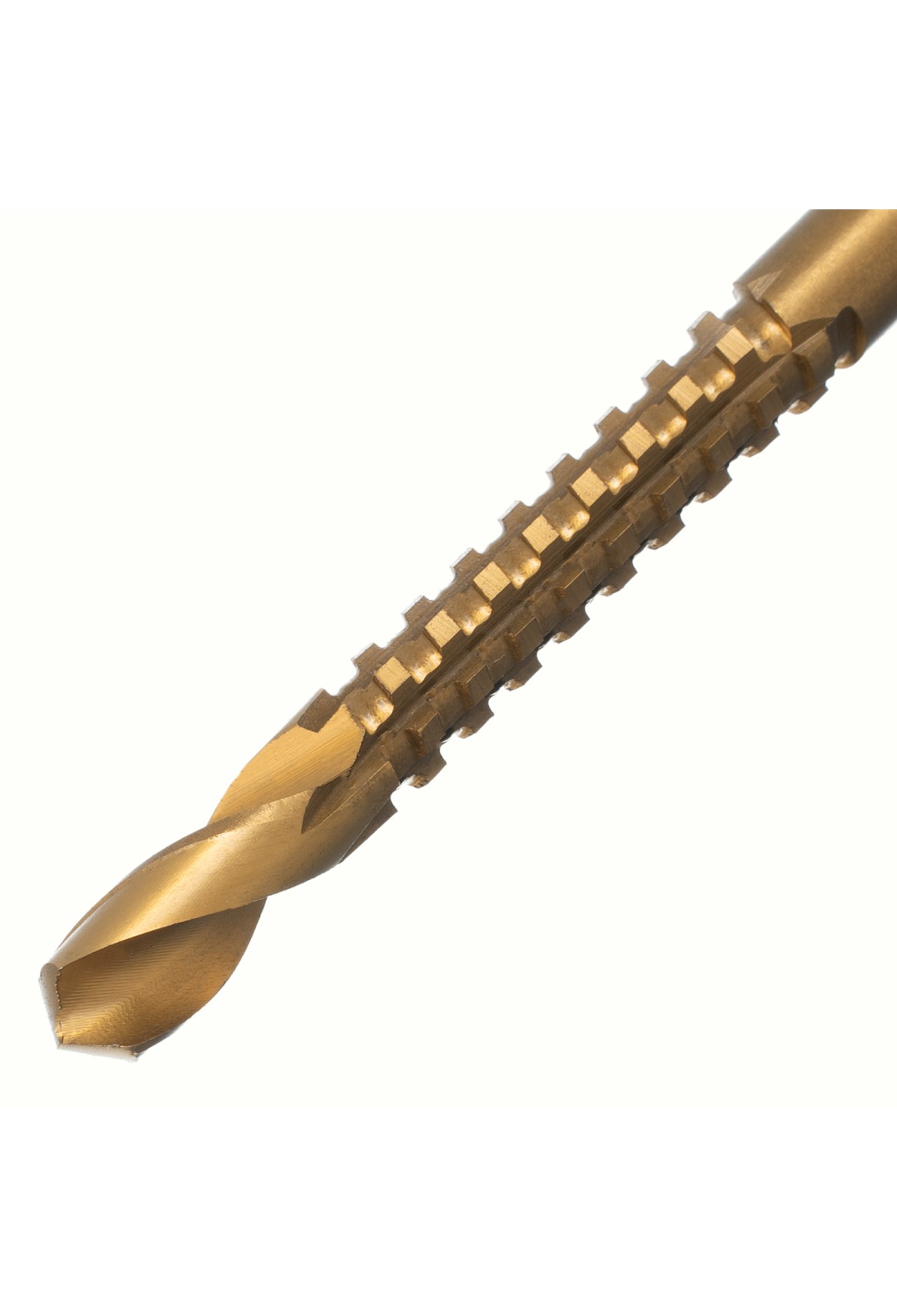 • Нитридтитановое покрытие защищает сверло-фрезу от коррозии и повышает его устойчивость к перегреву.