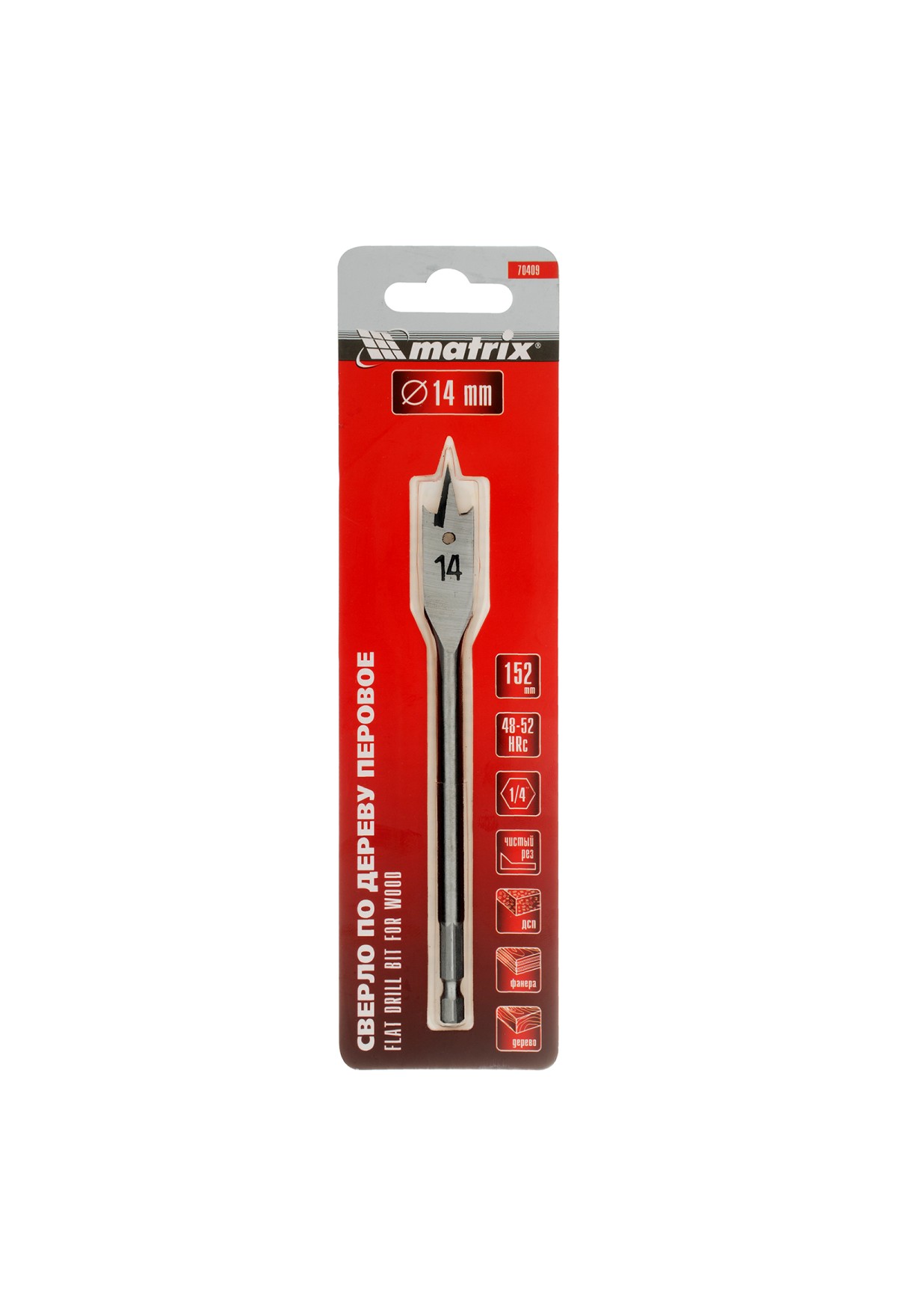 Технические характеристики Сверло по дереву перовое, 14 мм, шестигранный хвостовик Matrix