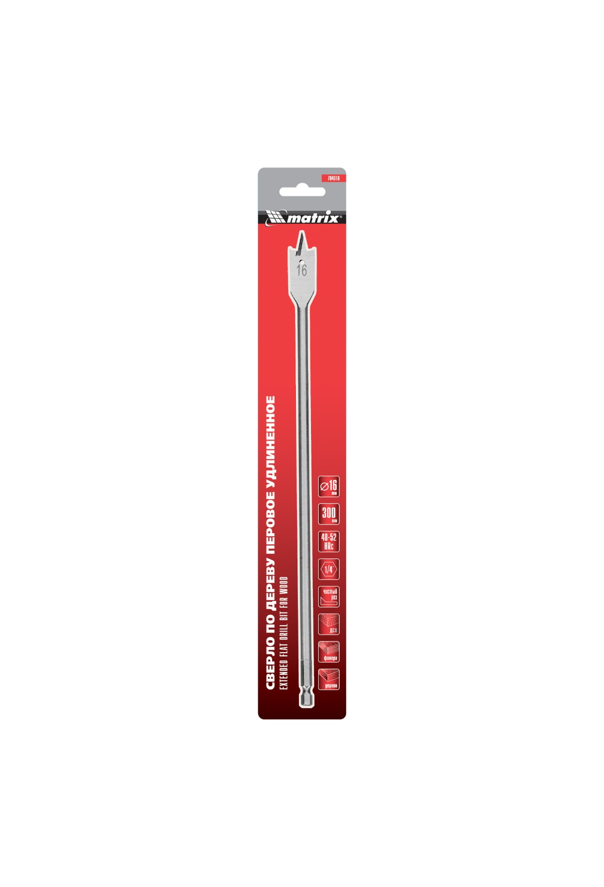 Технические характеристики Сверло по дереву перовое удлиненное, 16 х 300 мм, шестигранный хвостовик Matrix