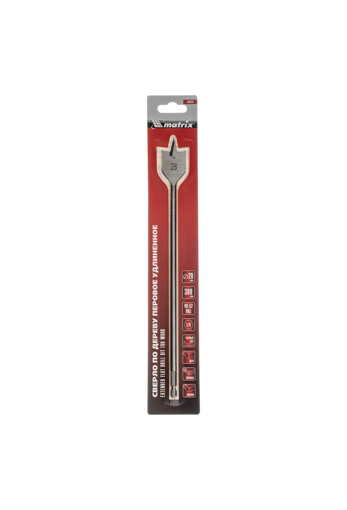 Сверло по дереву перовое удлиненное, 28 х 300 мм, шестигранный хвостовик Matrix