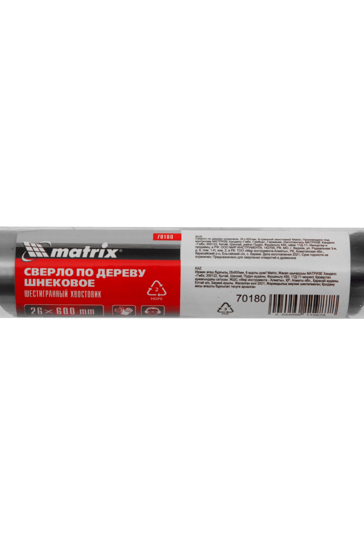 Технические характеристики Сверло по дереву шнековое, 26 х 600 мм, шестигранный хвостовик Matrix