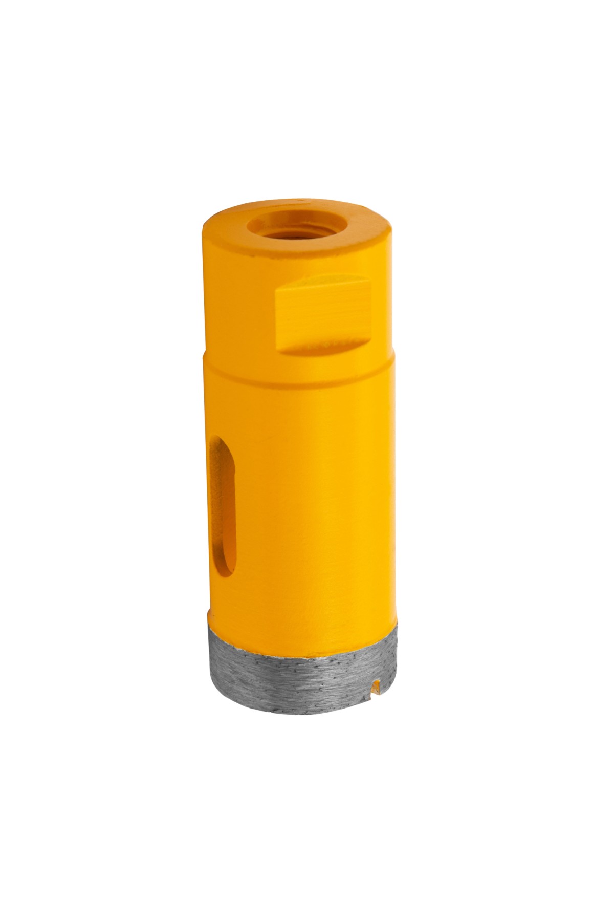 Алмазное сверло Denzel 72683 диаметром 30 мм, с резьбой М14, предназначено для «мокрого» сверления по керамограниту, мрамору, стеклу и керамической плитке. Позволяет получать ровные отверстия без сколов, используется для проведения ремонтных и отделочных работ. Сверло (коронку) устанавливают на вал углошлифовальной машины, благодаря чему скорость сверления увеличивается в несколько раз по сравнению с дрелью или шуруповертом. Применение водяного охлаждения повышает срок службы оснастки. Чтобы точно позиционировать сверло при сверлении дрелью, рекомендуется использовать кондуктор (арт. 72830).