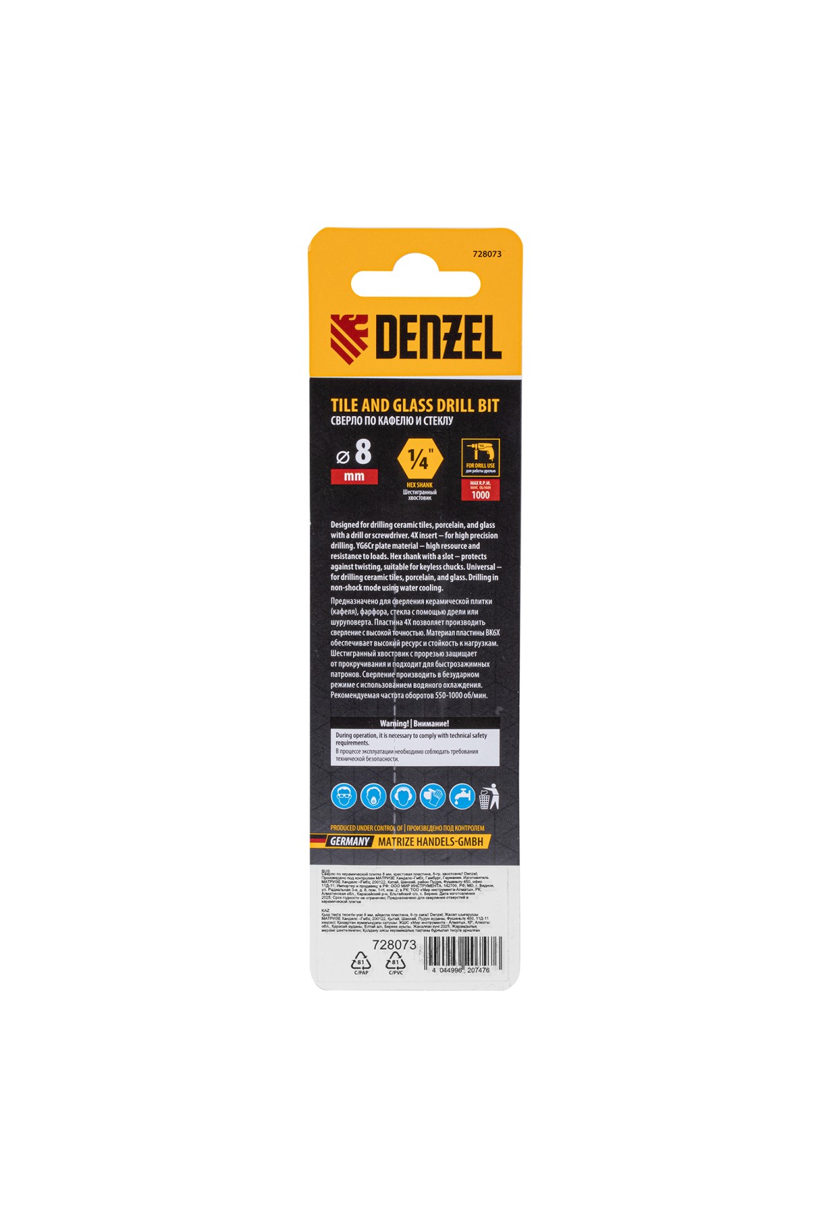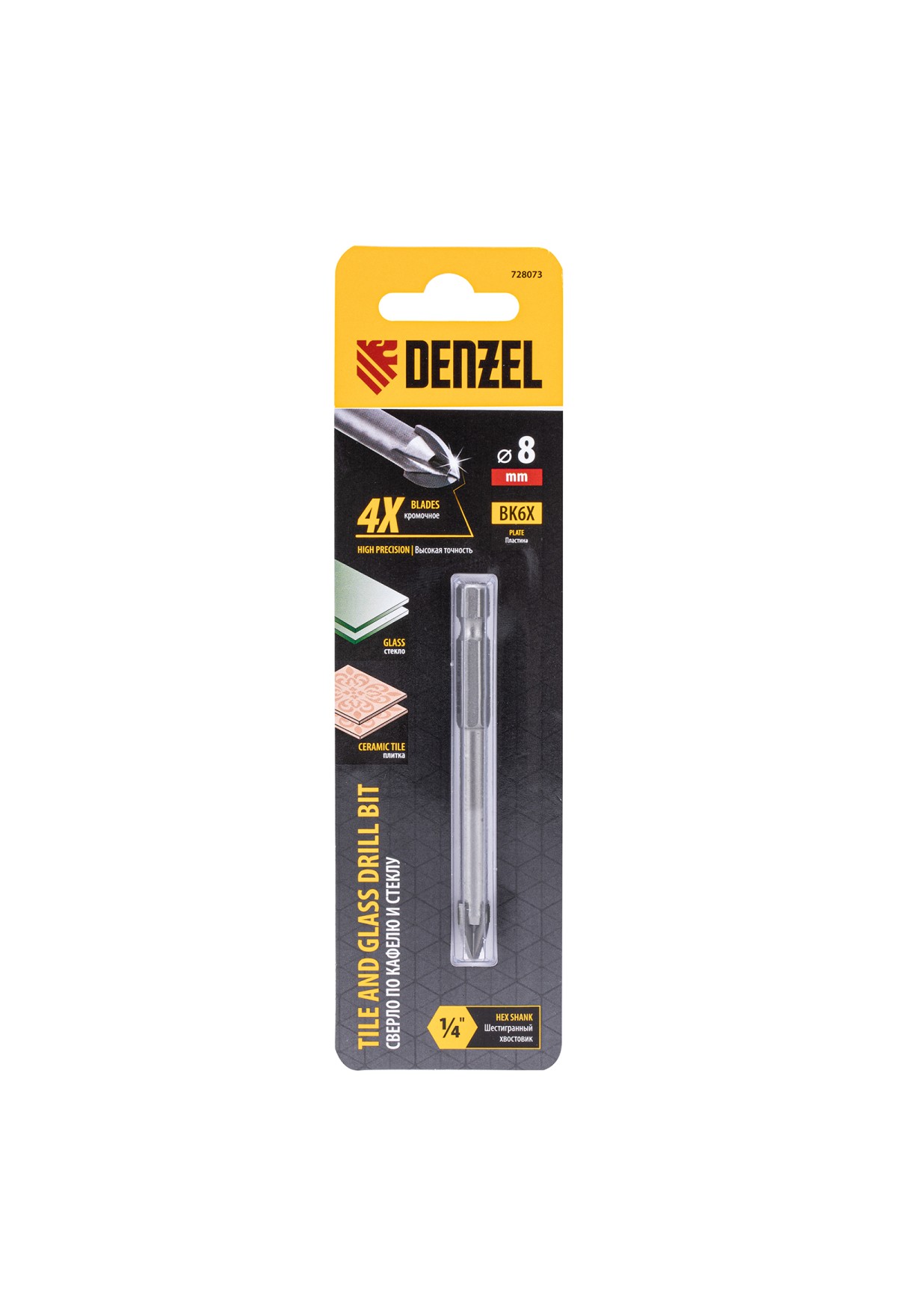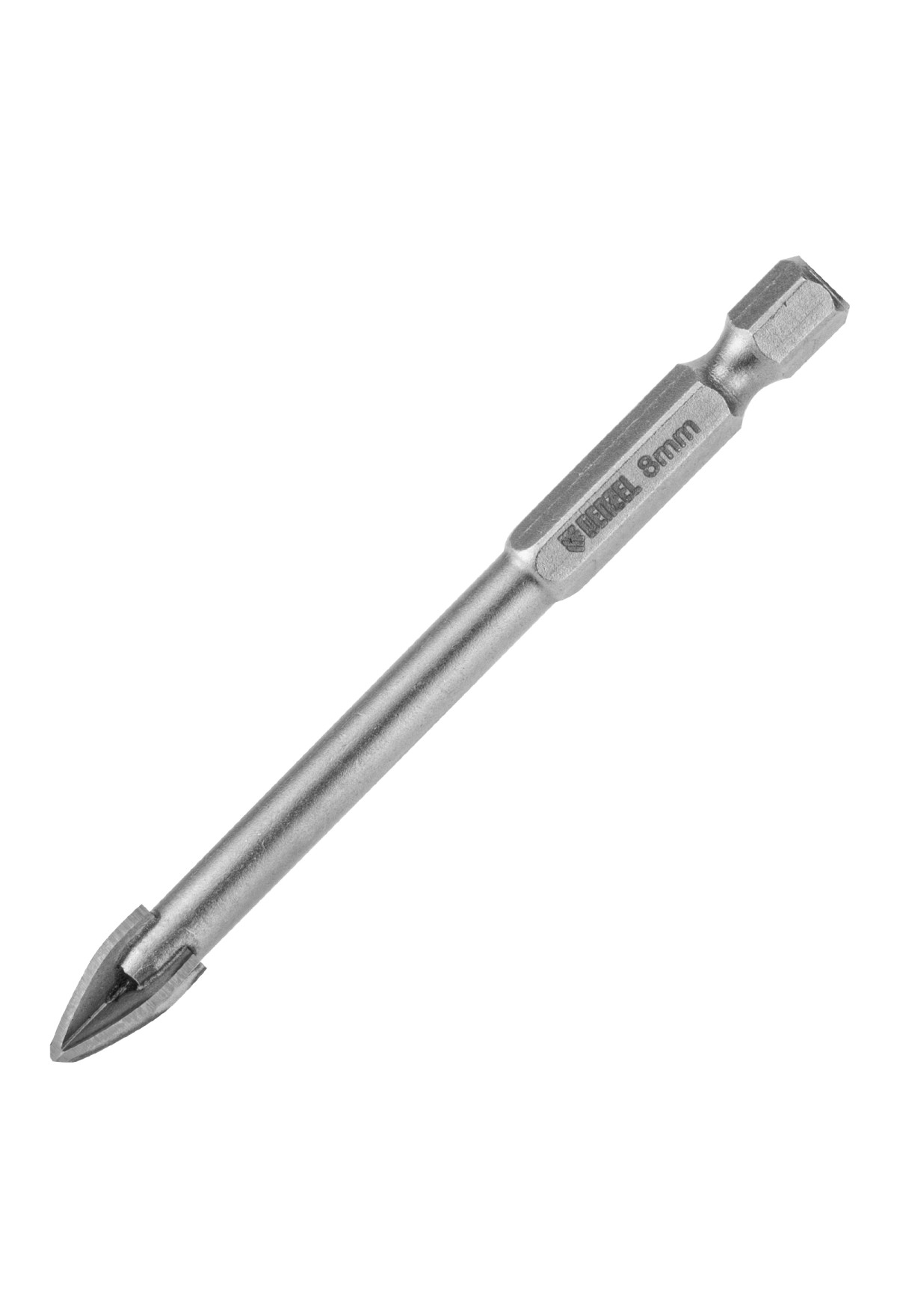 Сверло Denzel 728073, 8 мм, с крестовой пластинкой и шестигранным хвостовиком, рассчитано на сверление керамической плитки, стекла, мрамора и фарфора. Благодаря 4-гранной режущей пластине оно обеспечивает высокую скорость засверливания. Сверло подходит для интенсивного профессионального использования. В процессе работы рекомендуется применять водяное охлаждение для увеличения ресурса сверла.