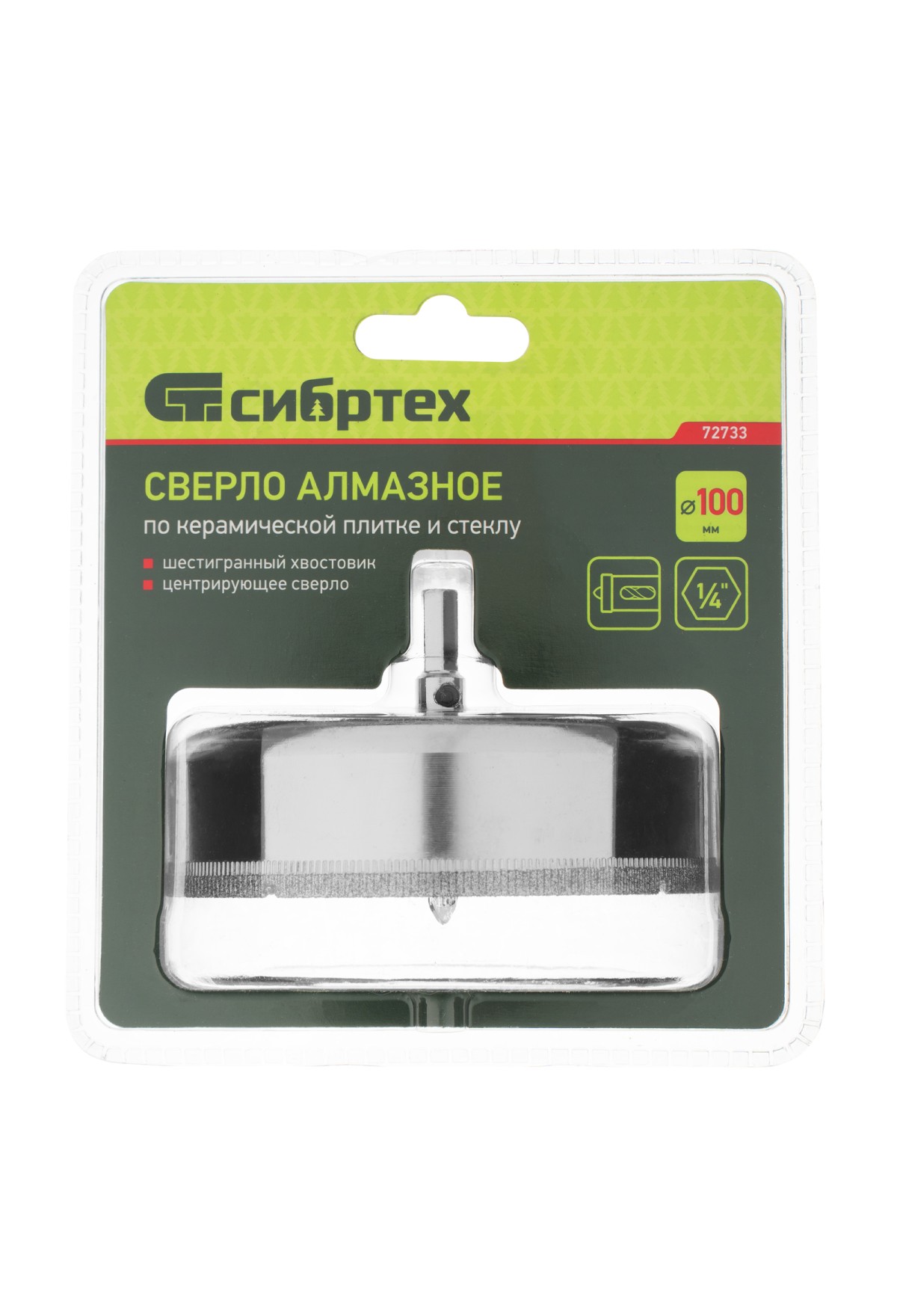 Сверло Сибртех 72733 размером 100 х 55 м, с шестигранным хвостовиком и центрирующим сверлом, позволяет получать отверстия в керамической плитке и стекле. Его устанавливают на дрель или шуруповерт, рекомендуемый диапазон рабочих оборотов 350-700 об/мин. Оснастка используется при выполнении бытовых ремонтных и отделочных работ.