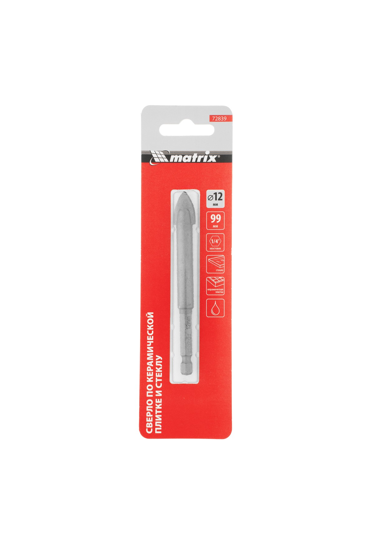 Технические характеристики Сверло по керамической плитке и стеклу, 12 мм, шестигранный хвостовик// Matrix