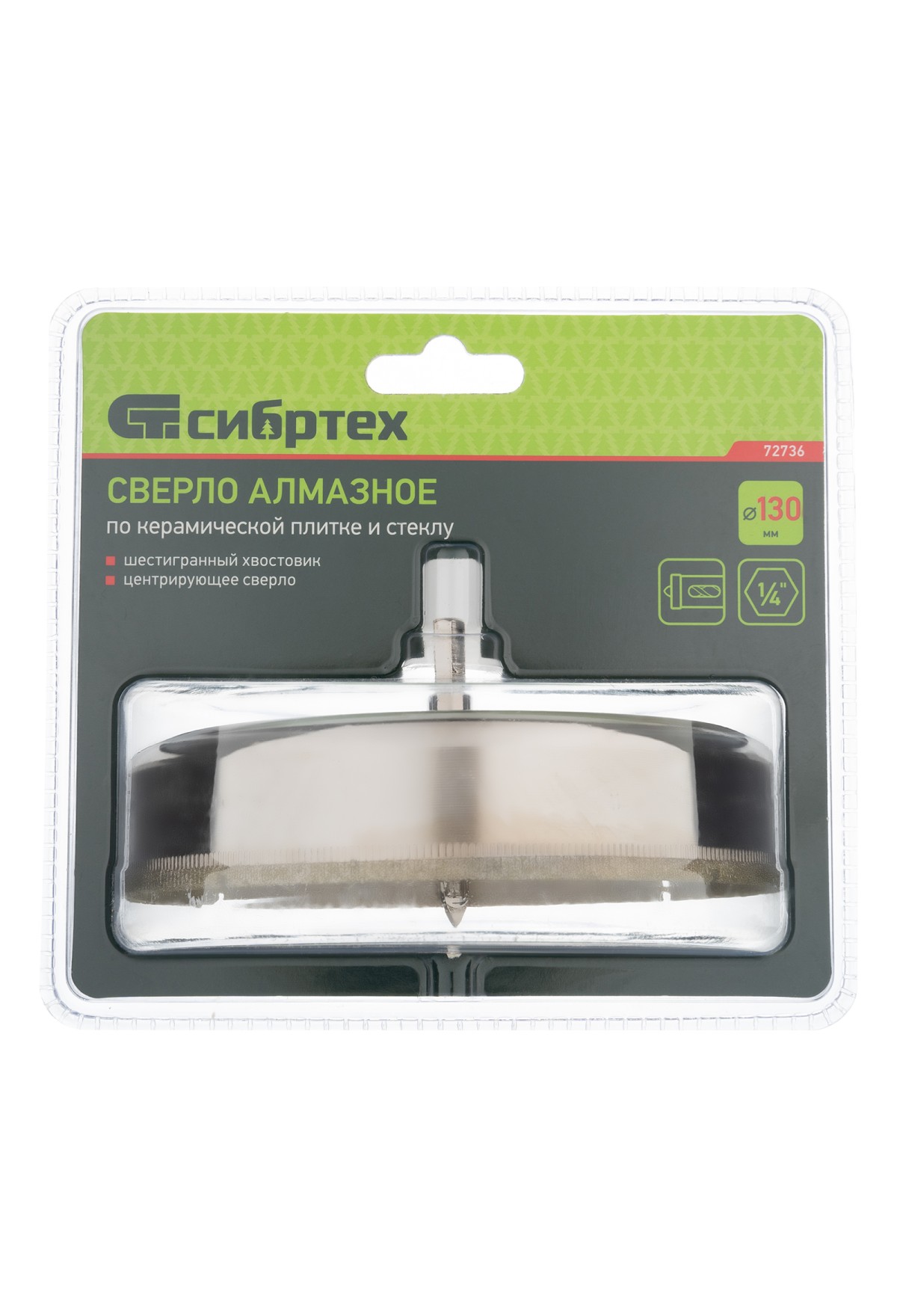 Сверло Сибртех 72736 размером 130 х 55 м, с шестигранным хвостовиком и центрирующим сверлом, позволяет получать отверстия в керамической плитке и стекле. Его устанавливают на дрель или шуруповерт, рекомендуемый диапазон рабочих оборотов 350-700 об/мин. Оснастка используется при выполнении бытовых ремонтных и отделочных работ.