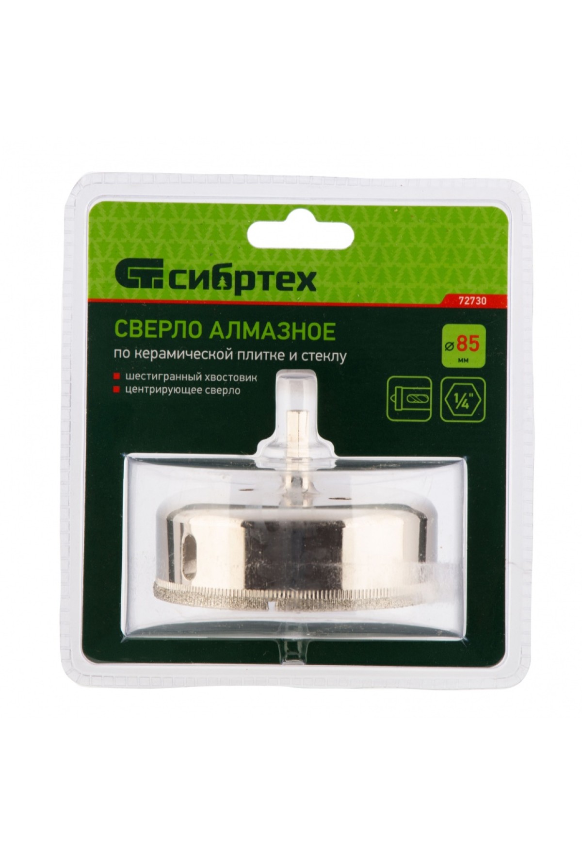 Сверло Сибртех 72730 размером 85 х 55 м, с шестигранным хвостовиком и центрирующим сверлом, позволяет получать отверстия в керамической плитке и стекле. Его устанавливают на дрель или шуруповерт, рекомендуемый диапазон рабочих оборотов 350-700 об/мин. Оснастка используется при выполнении бытовых ремонтных и отделочных работ.