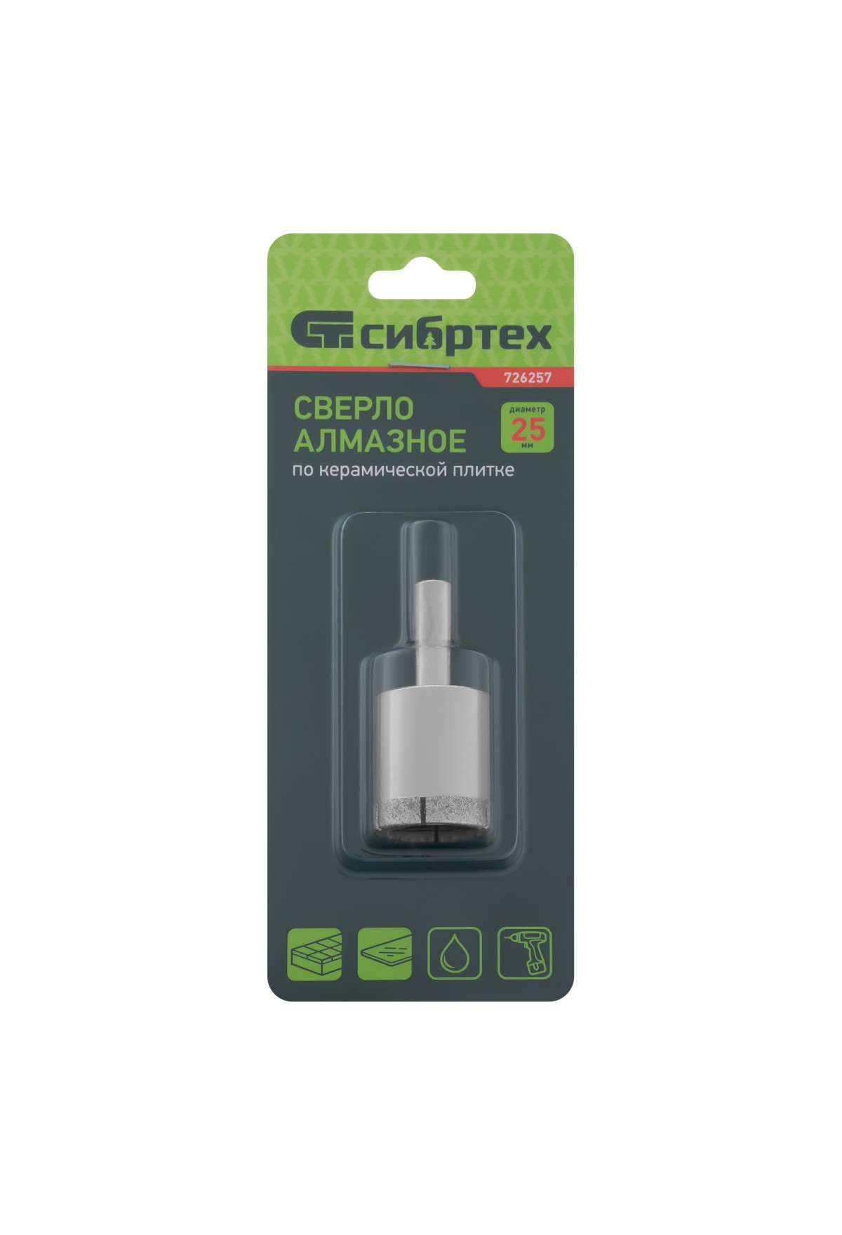 Сверло Сибртех 726257 размером 25 х 55 мм, с цилиндрическим хвостовиком, используется для получения ровных отверстий без сколов в стекле и керамической плитке. Устанавливается в патрон дрели или шуруповерта, работающих в диапазоне 350-700 об/мин. Во время работы рекомендуется применять водяное охлаждение — это существенно увеличит ресурс оснастки. Использование кондуктора (арт. 72830) позволяет точно позиционировать сверло и облегчает засверливание. Оснастка подходит для выполнения работ небольшого объема и рекомендована для использования в быту.