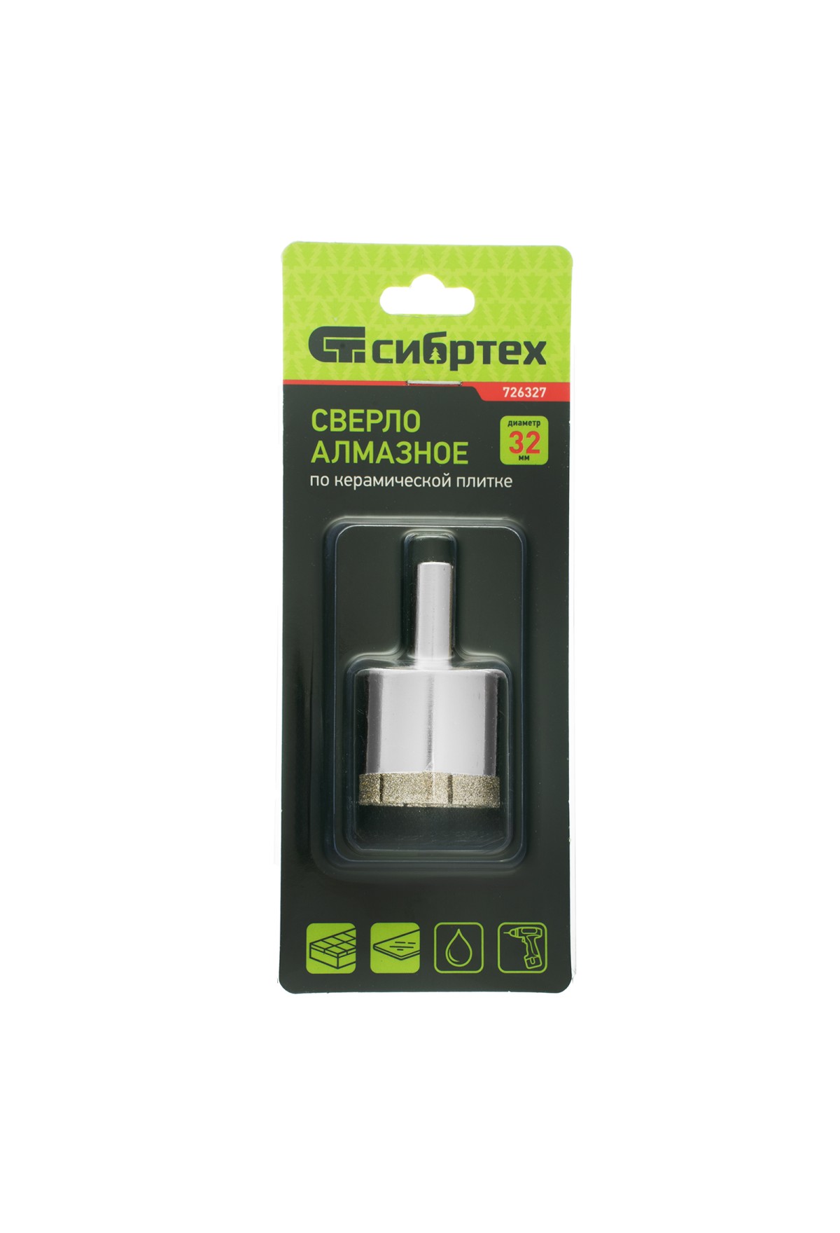 Сверло Сибртех 726327 размером 32 х 55 мм, с цилиндрическим хвостовиком, используется для получения ровных отверстий без сколов в стекле и керамической плитке. Устанавливается в патрон дрели или шуруповерта, работающих в диапазоне 350-700 об/мин. Во время работы рекомендуется применять водяное охлаждение — это существенно увеличит ресурс оснастки. Использование кондуктора (арт. 72830) позволяет точно позиционировать сверло и облегчает засверливание. Оснастка подходит для выполнения работ небольшого объема и рекомендована для использования в быту.