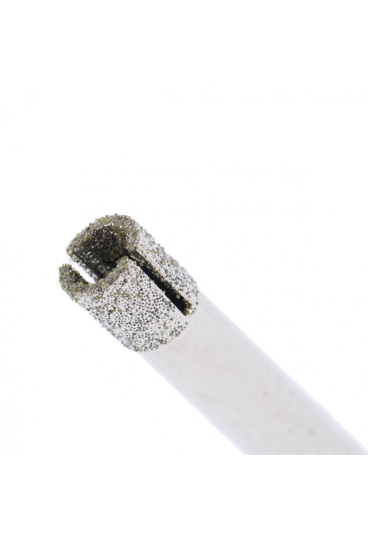 Сверло Сибртех 726087 размером 8 х 55 мм, с цилиндрическим хвостовиком, используется для получения ровных отверстий без сколов в стекле и керамической плитке. Устанавливается в патрон дрели или шуруповерта, работающих в диапазоне 350-700 об/мин. Во время работы рекомендуется применять водяное охлаждение — это существенно увеличит ресурс оснастки. Использование кондуктора Matrix 72833 позволяет точно позиционировать сверло и облегчает засверливание. Оснастка подходит для выполнения работ небольшого объема и рекомендована для использования в быту.