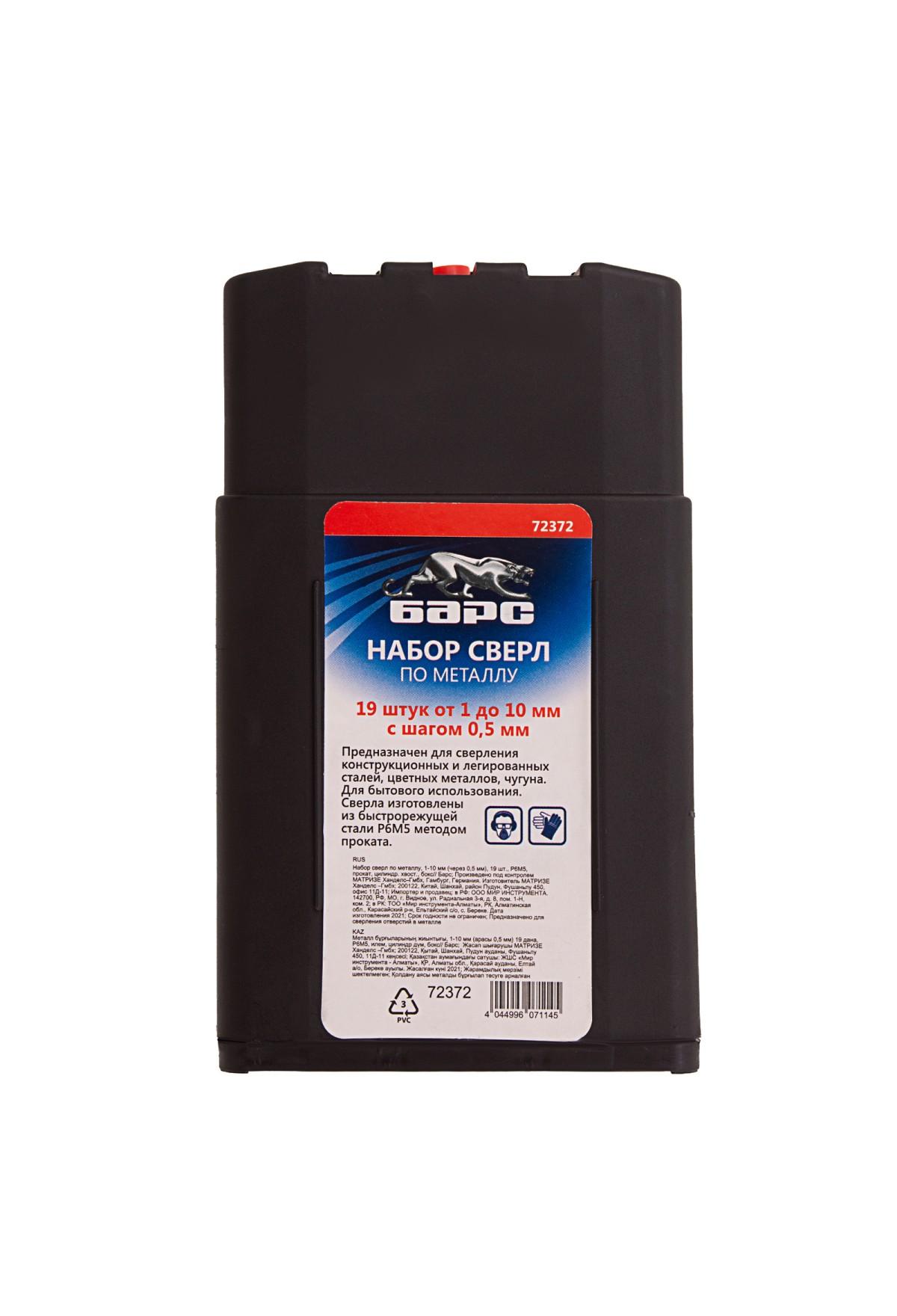 Набор сверл по металлу Барс 72372 включает 19 оснасток диаметром 1-10 мм (через 0,5 мм) из прокатанной стали P6M5, с цилиндрическим хвостовиком, упакованных в пластиковый бокс и предназначенных для сверления отверстий в металле и жестком пластике. В набор входят сверла самых востребованных размеров, которые будут полезны в слесарной мастерской, во время ремонта, а также дома, в гараже или на даче.