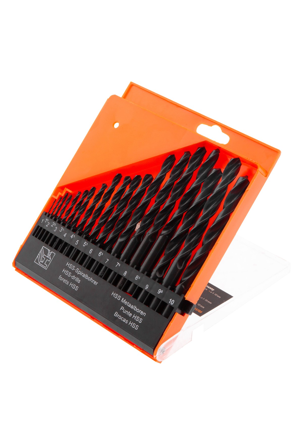 Комплектация Сверло по металлу 1, 1,5, 2, 2,5, 3, 3,5, 4, 4,5, 5, 5,5, 6, 6,5, 7, 7,5, 8, 8,5, 9, 9,5, 10 - 19 штПластиковый кейс - 1 шт