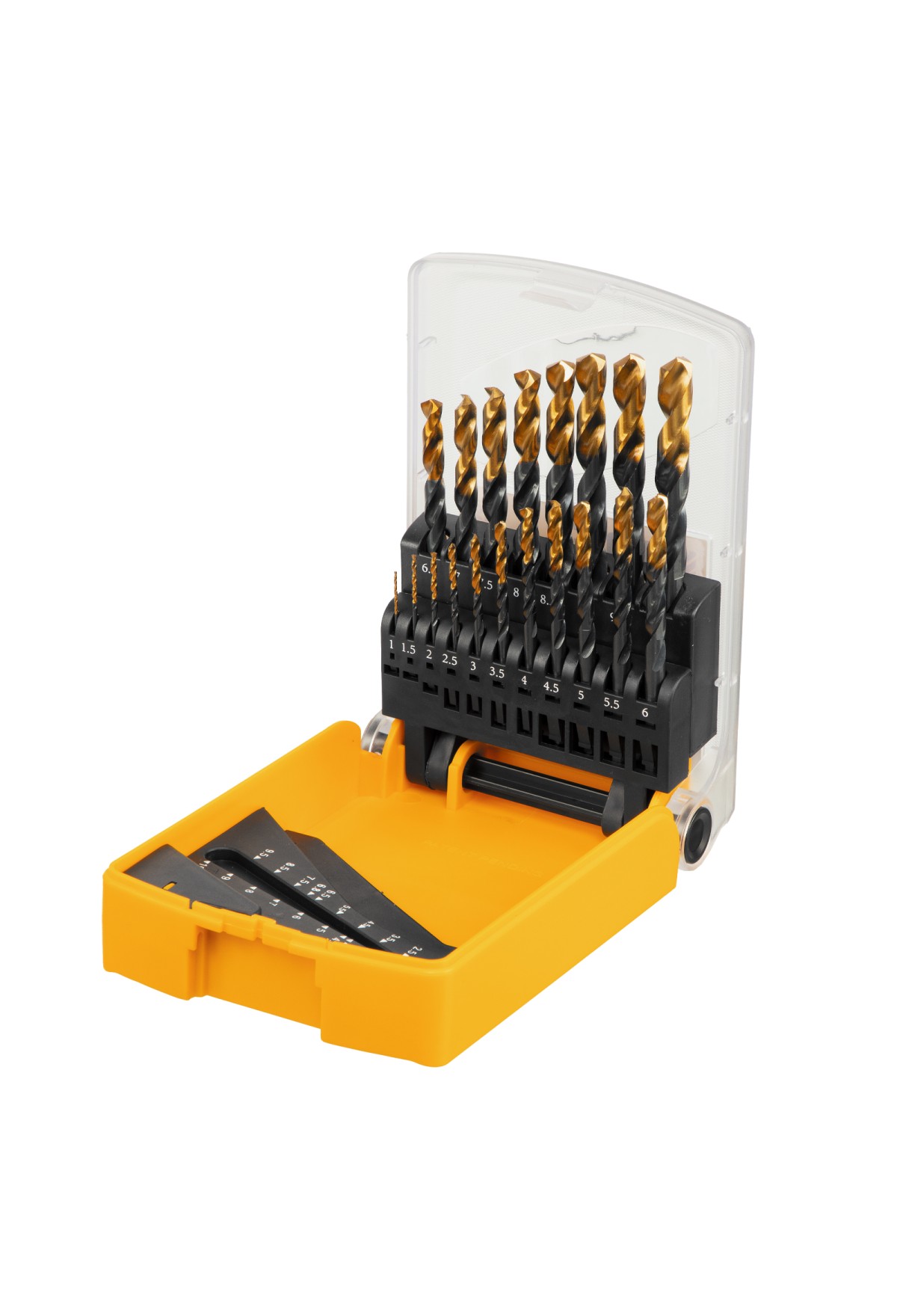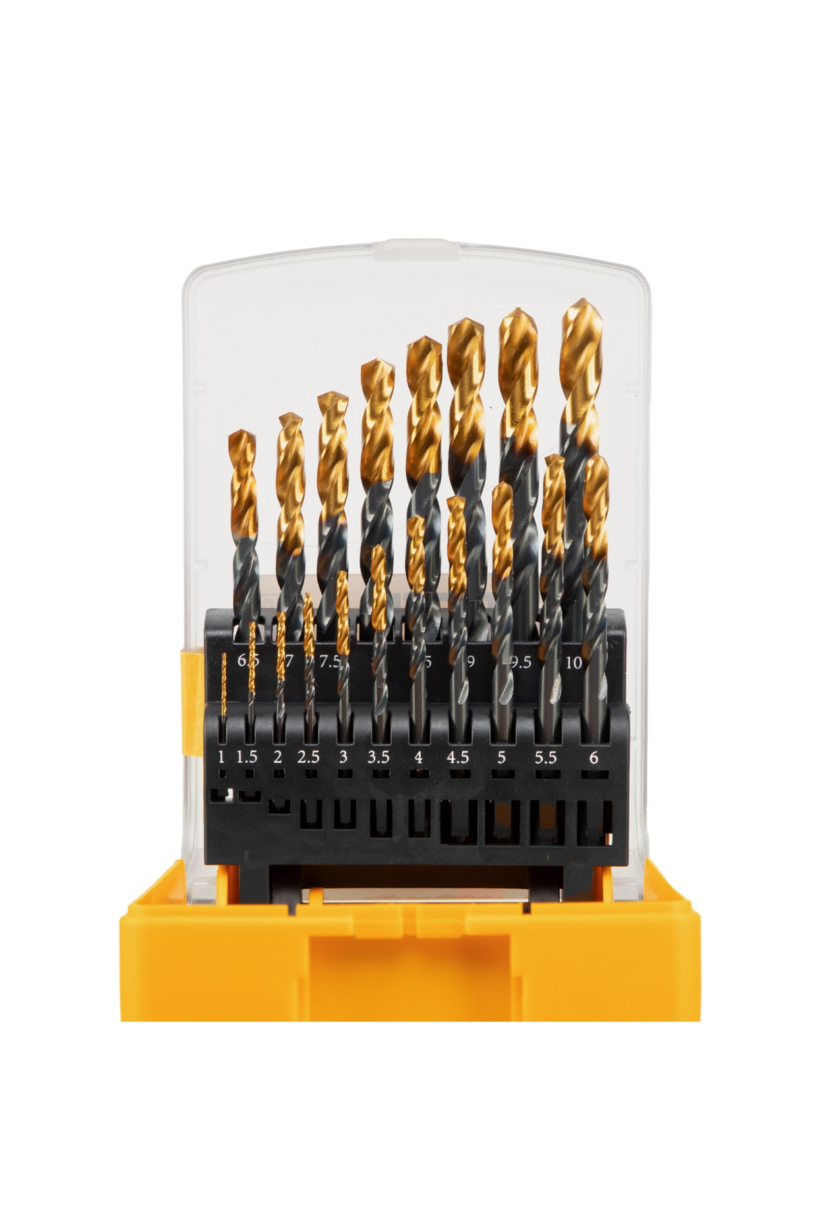 Комплектация Сверло по металлу 1, 1.5, 2, 2.5, 3, 3.5, 4, 4.5, 5, 5.5, 6, 6.5, 7, 7.5, 8, 8.5, 9, 9.5, 10 - 19 штПластиковй кейс - 1 шт