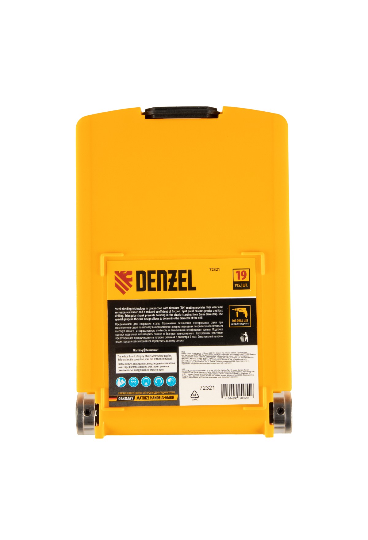 Набор Denzel Golden Tip 72321 включает 19 сверл по металлу из стали HSS-Tin самых распространенных диаметров 1-10 мм. Вышлифованные профили обеспечивают идеальную геометрию сверл (класс точности A1) и позволяют получать качественные отверстия в стальных заготовках. Набор упакован в пластиковый кейс, в крышке которого предусмотрен шаблон для измерения диаметра сверла — такое решение значительно ускоряет работу.