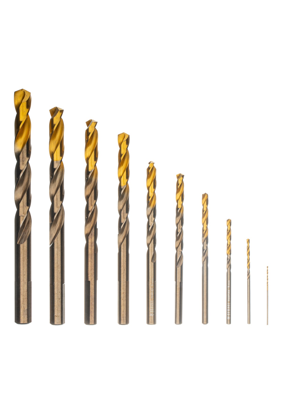 - Высокий ресурс — нитридтитановое покрытие уменьшает трение и увеличивает стойкость сверл к нагреву и износу.